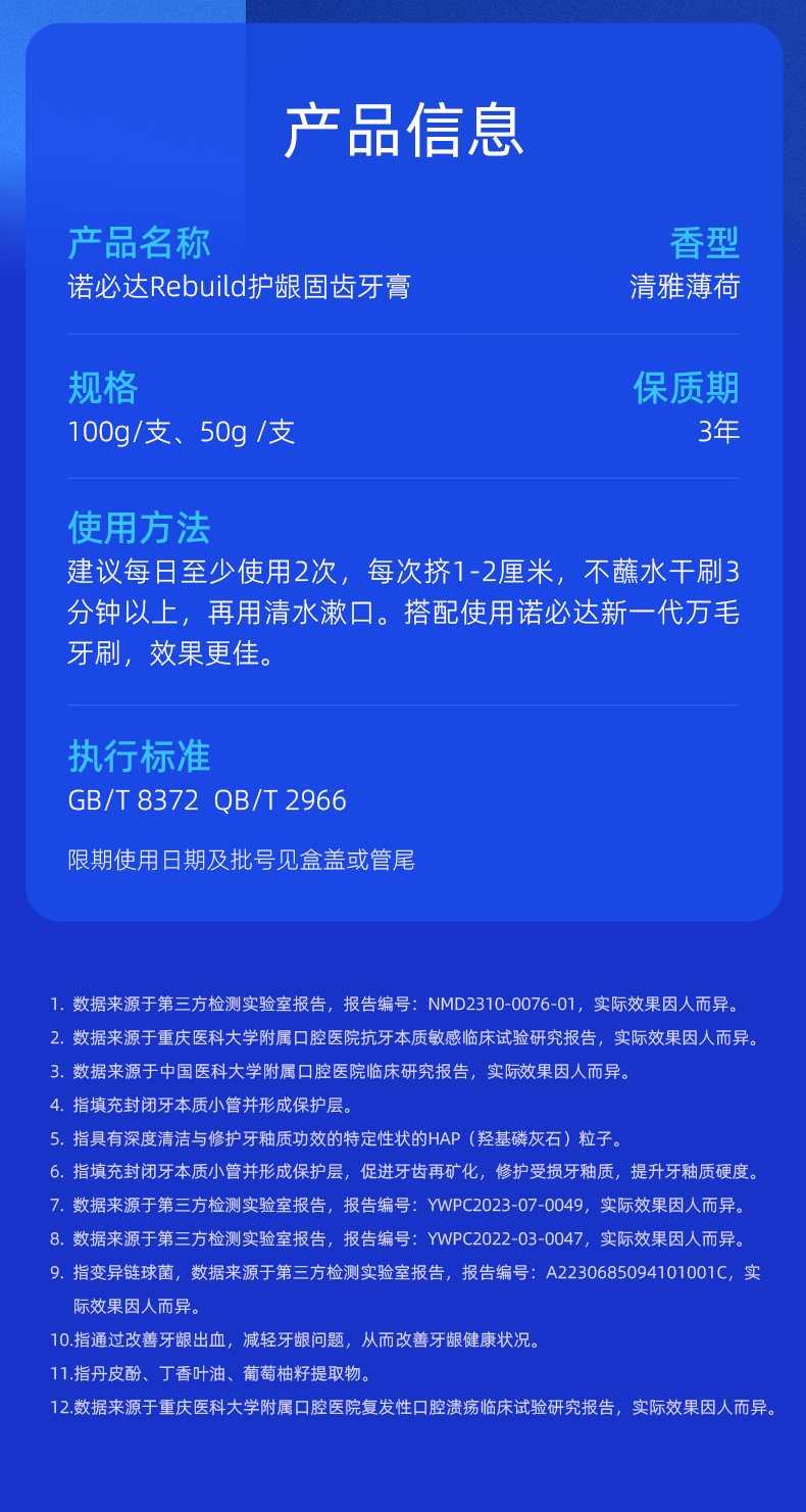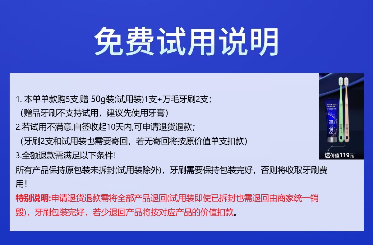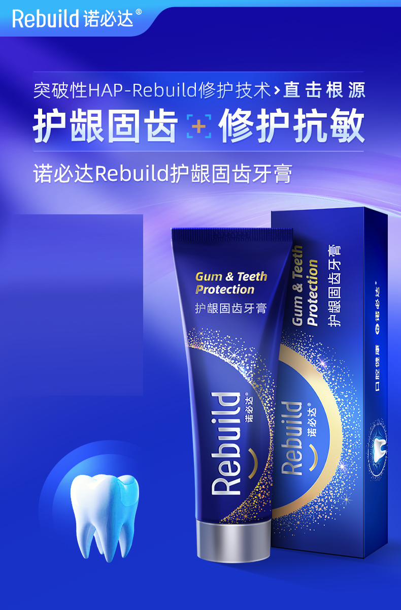 推文款护龈固齿【购5支得总价值119元50g1支免费试用+万毛牙刷2支】诺必达Rebuild护龈固齿牙膏