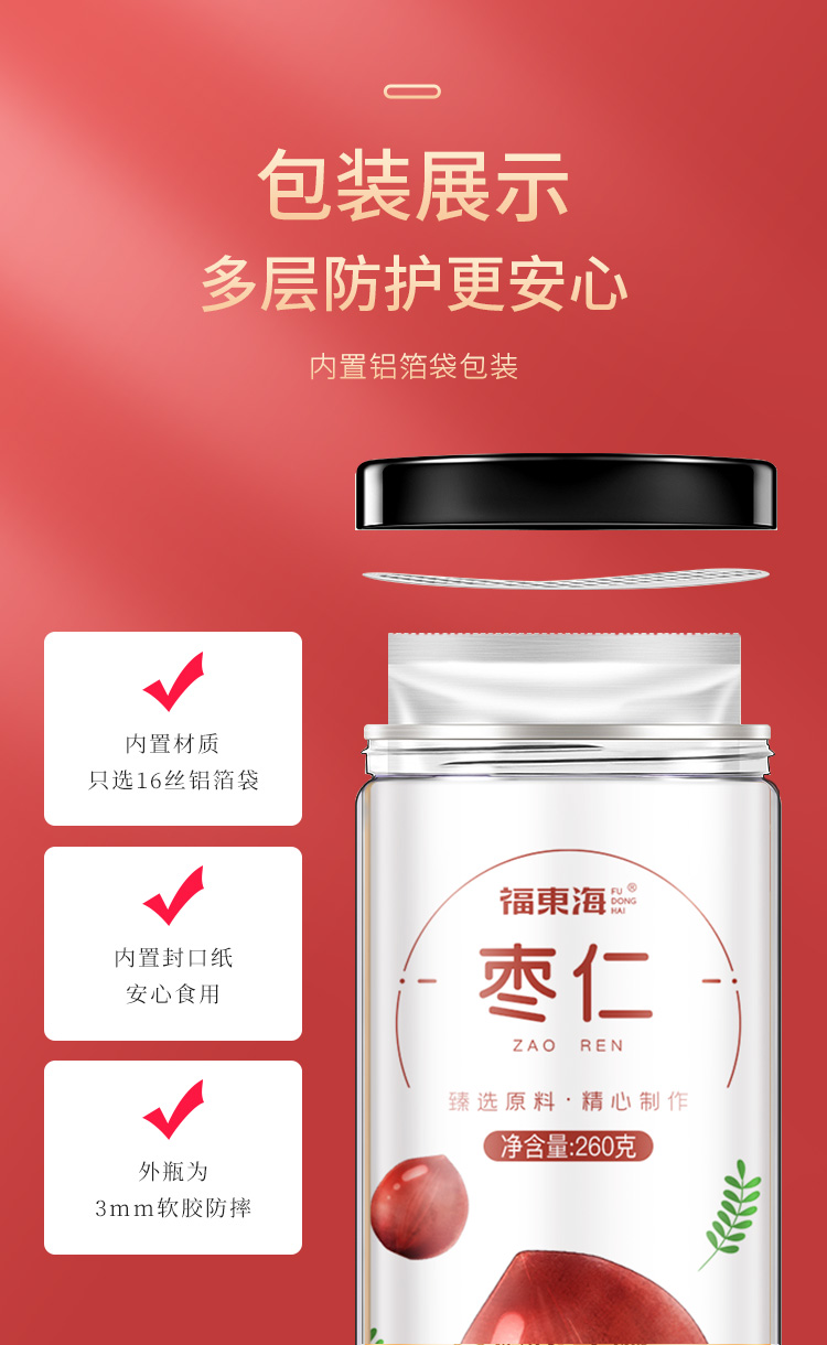福东海 枣仁260克/瓶 可炒制熟枣仁茶汤 枣仁百合茯苓茶养生茶原材配料