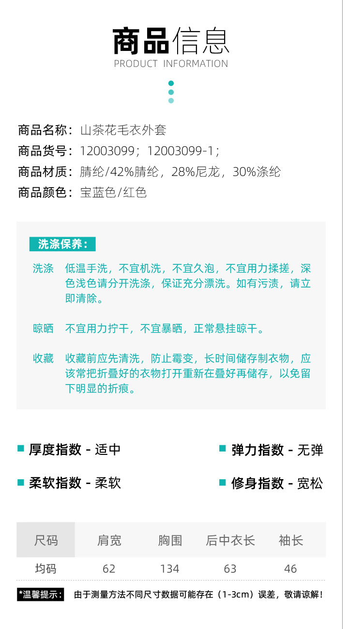 新年必备 |山茶花毛衣外套 | 现货加急发 | 蓝色显白时尚 红色大气喜庆
