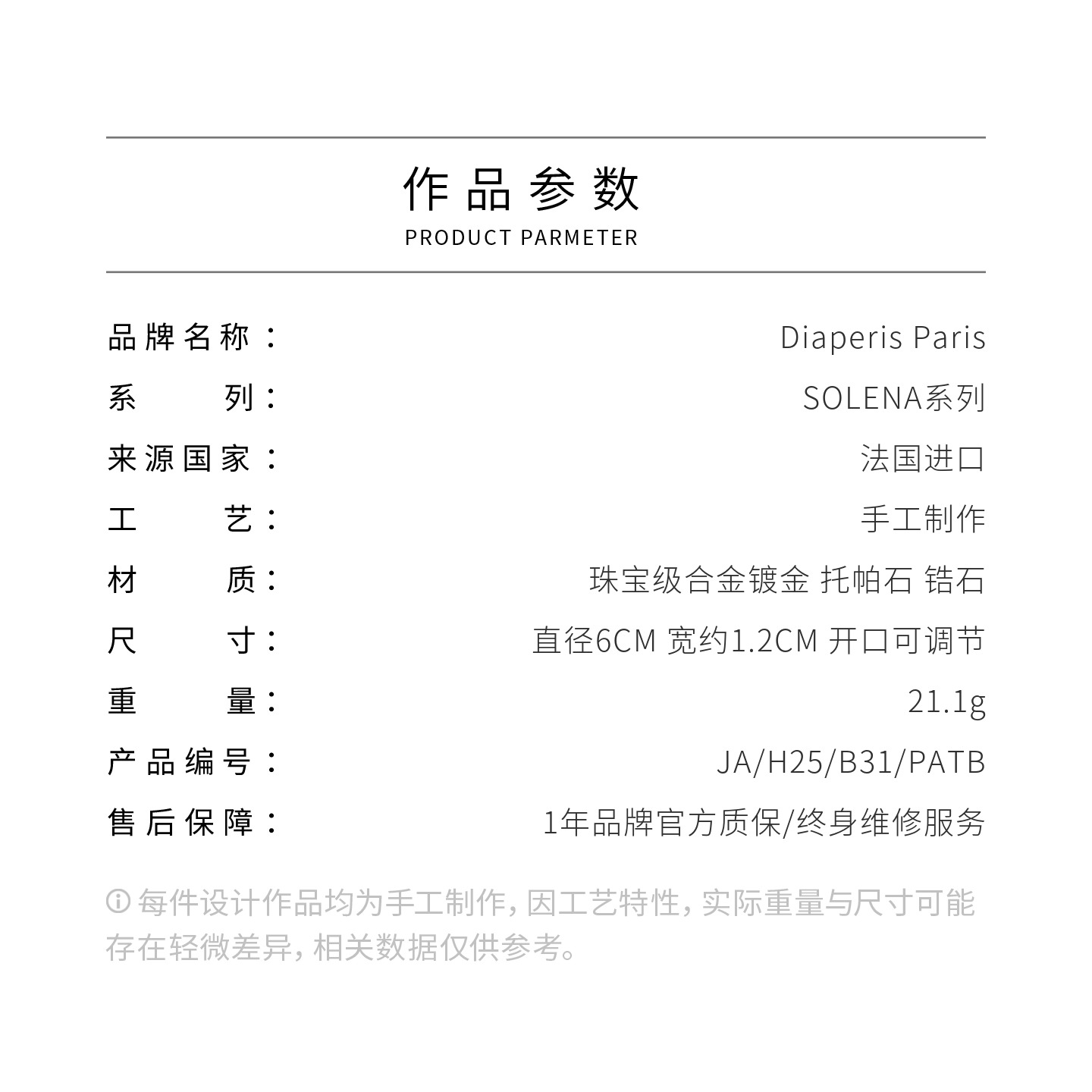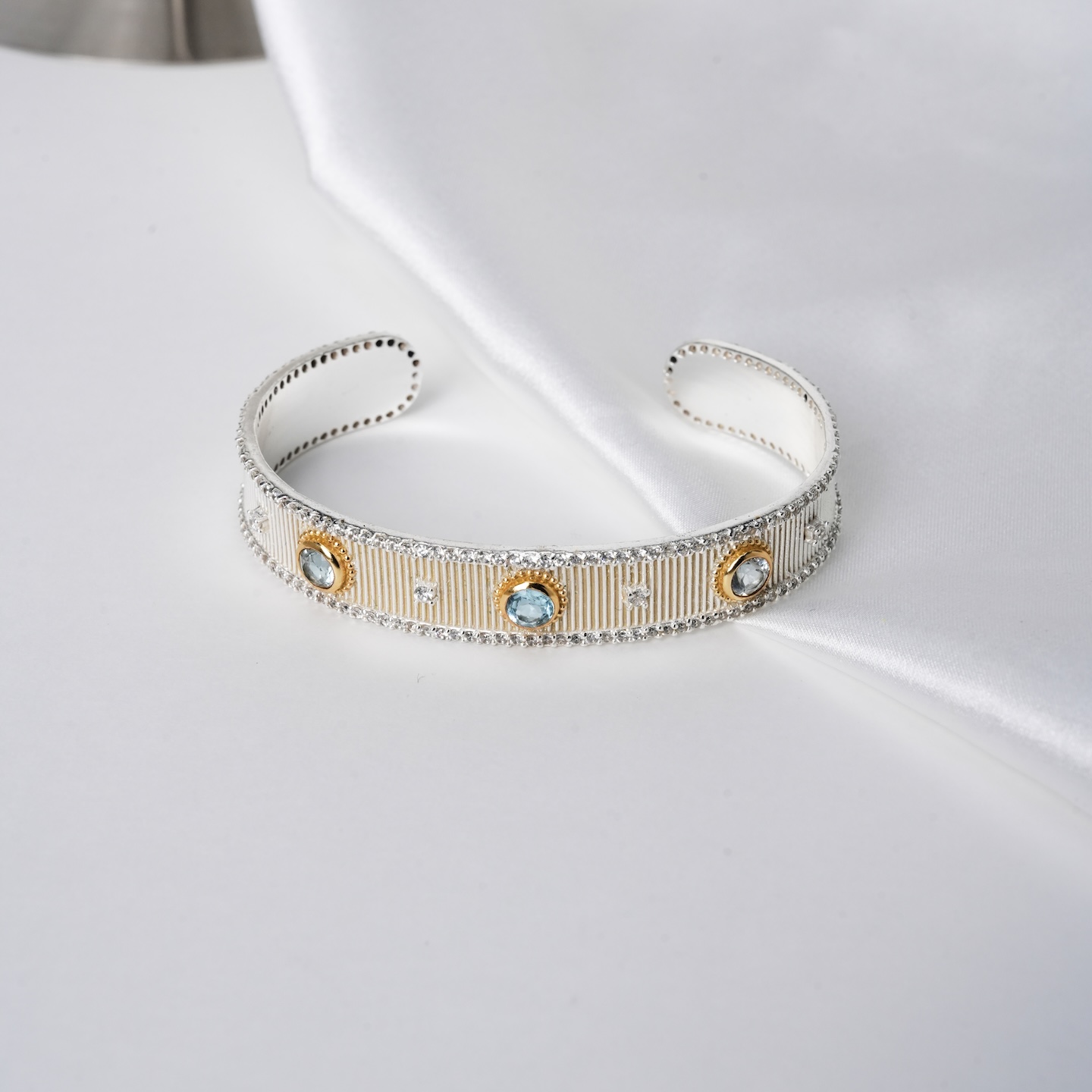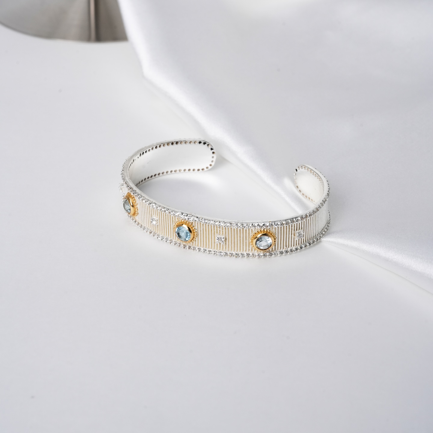 北京仓|Diaperis Paris-SOLENA-银色 蓝托帕石 锆石 手镯[法国设计师]