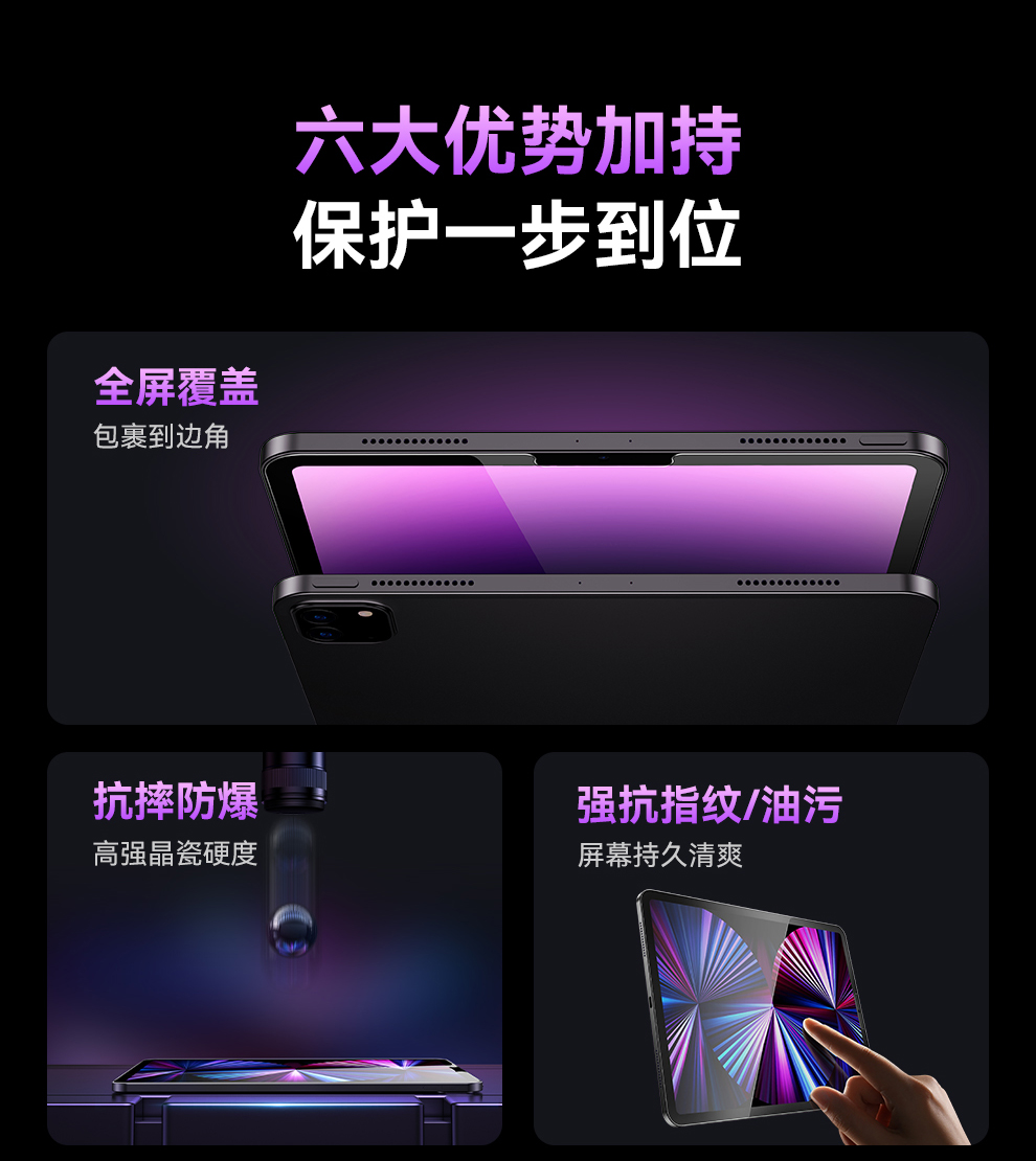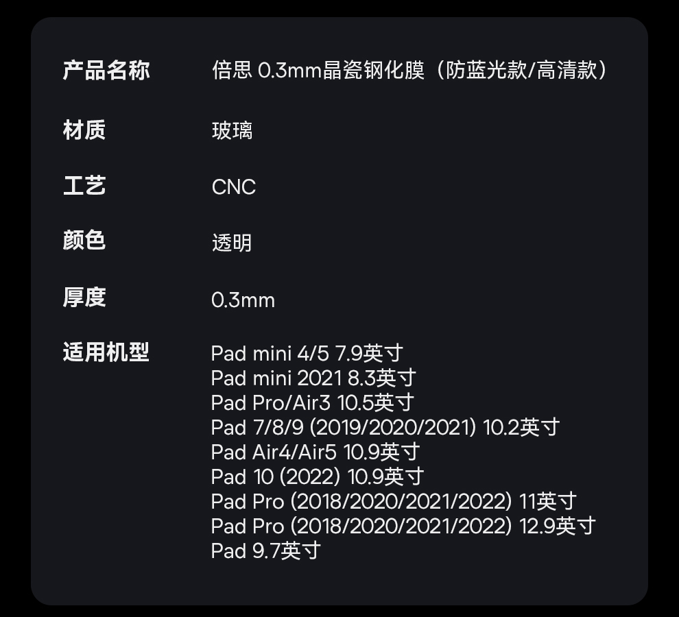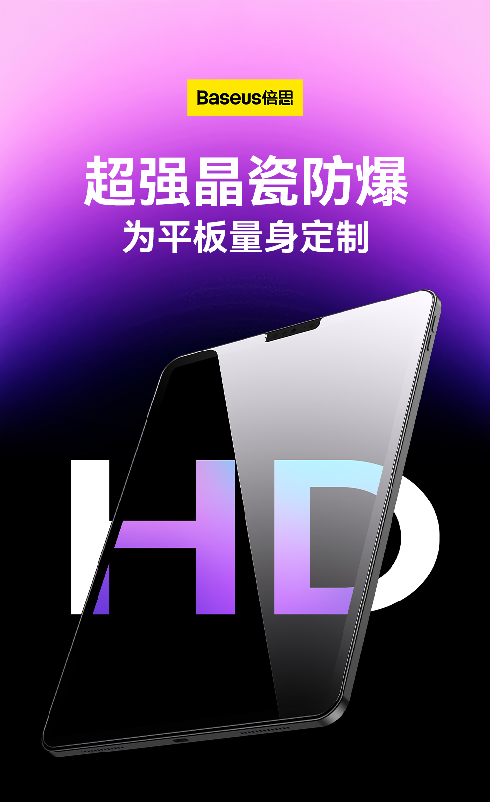 【69元3件】倍思晶瓷高清钢化膜 适用iPad 苹果平板(送:贴膜神器*1+清洁包*1)