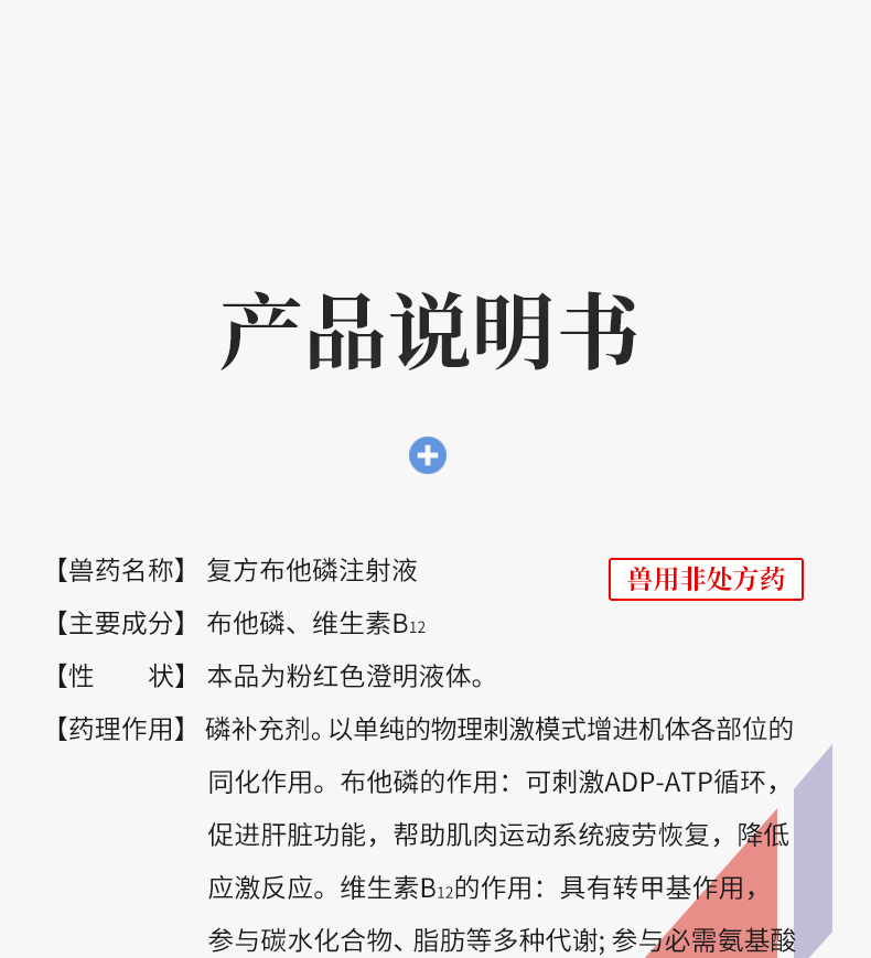 【积分兑换】华畜复方布他磷注射液100ml 动物能量补充剂 维生素B12 解僵
