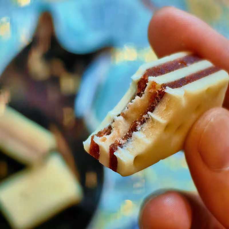 每一粒山楂芝士奶酪,都是独立包装,很方便,来不及喝牛奶,就扔几颗在包里,上班路上就可以解决!红白相间的小块可可爱爱,醇香芝士夹上酸甜山楂,口感爽滑细腻,清甜微酸,奶香与果味的碰撞,巧妙化解了甜腻,非常好吃,嚼完口气还很清新呢!