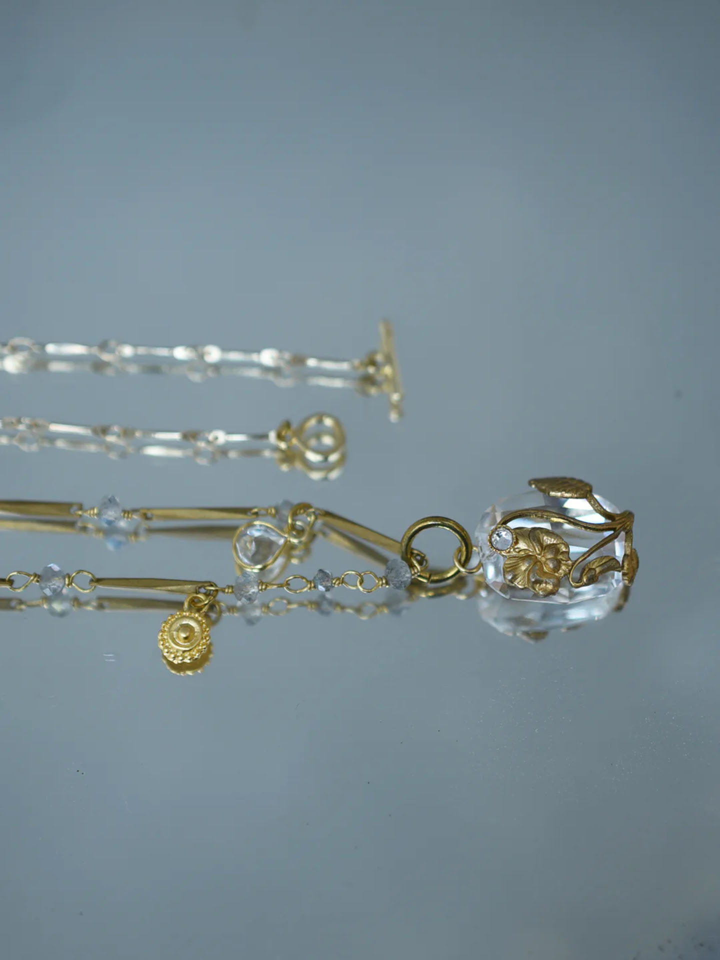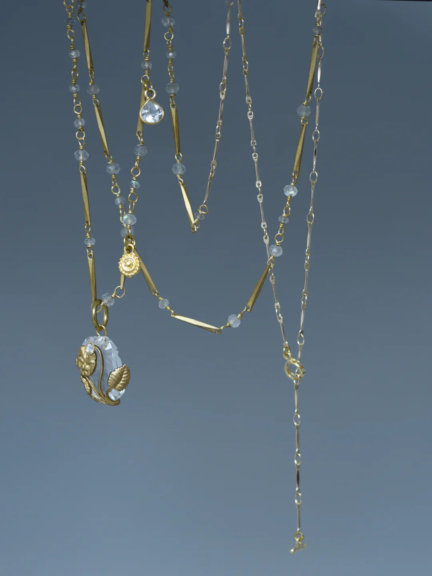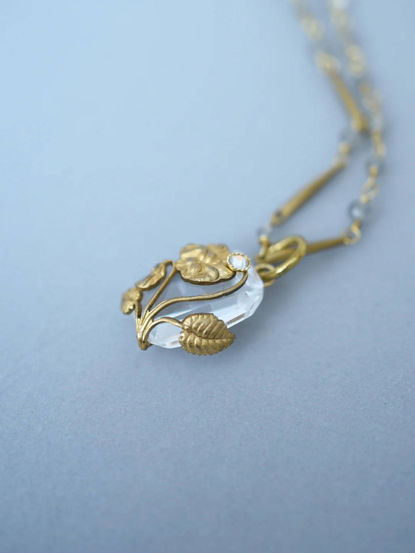 在途4周到|Monshiro-pansy-三色堇 白色托帕石 项链 长款[日本设计师]