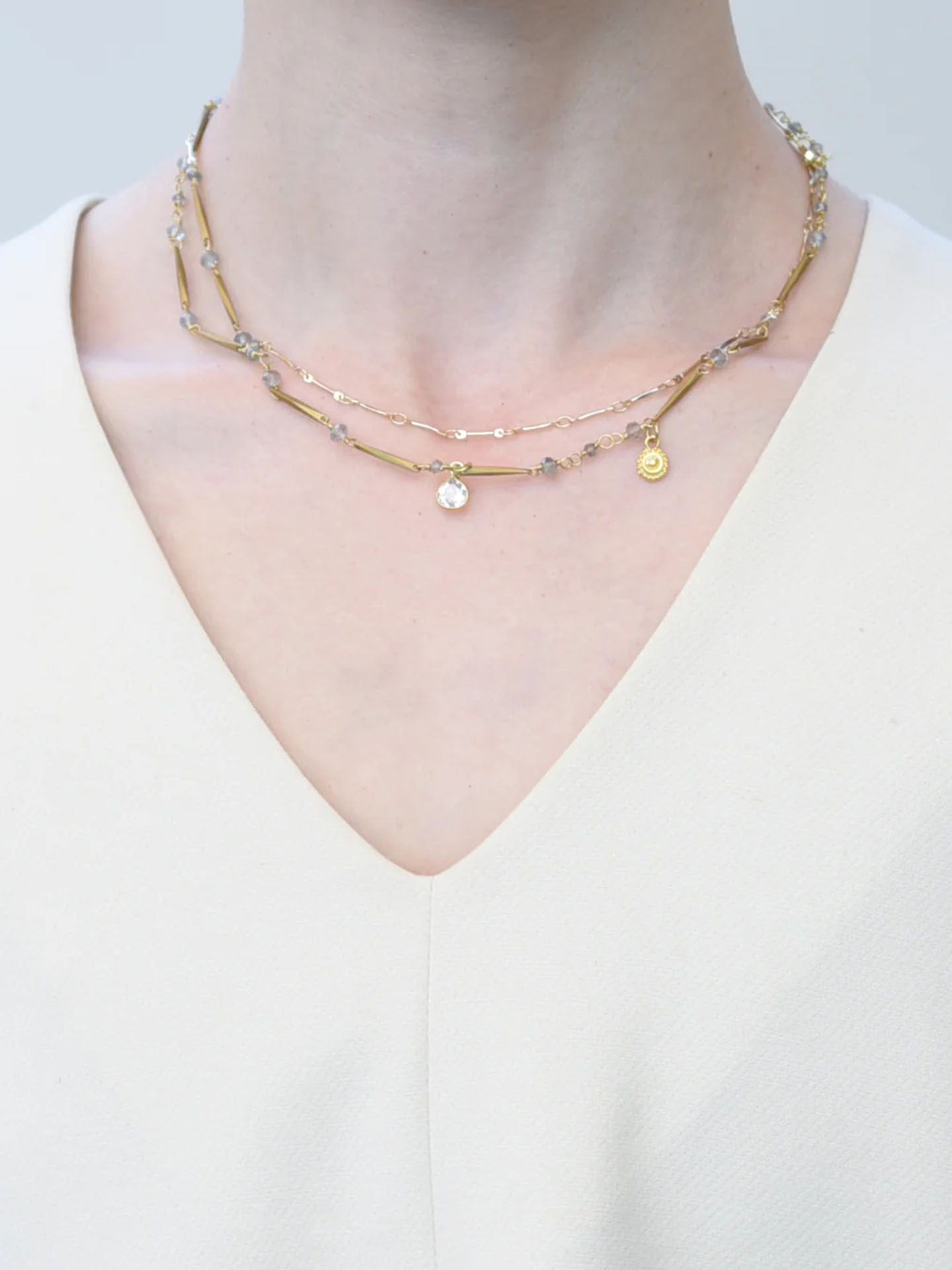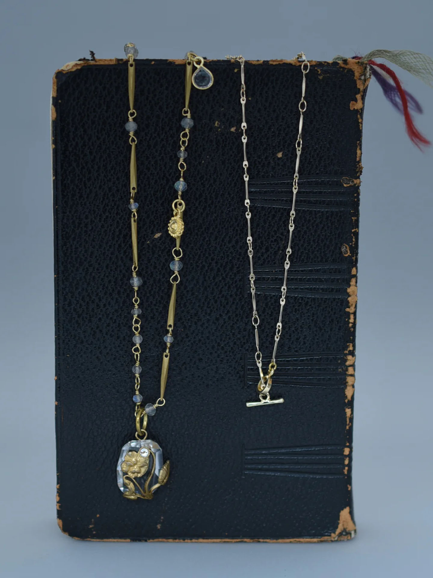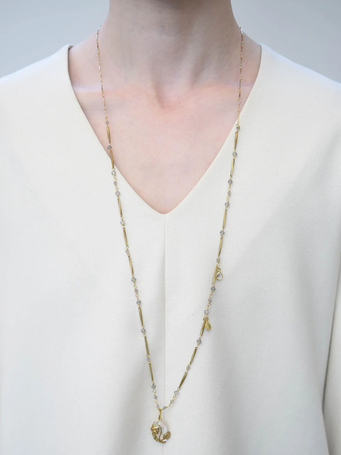 在途4周到|Monshiro-pansy-三色堇 白色托帕石 项链 长款[日本设计师]