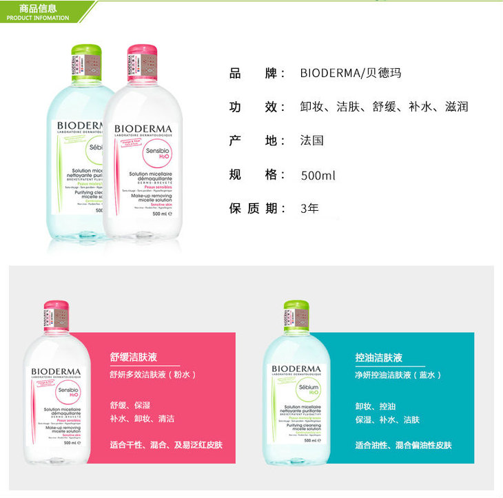 【温和卸妆 】贝德玛卸妆水粉水蓝水500ml 脸部温和清洁无刺激