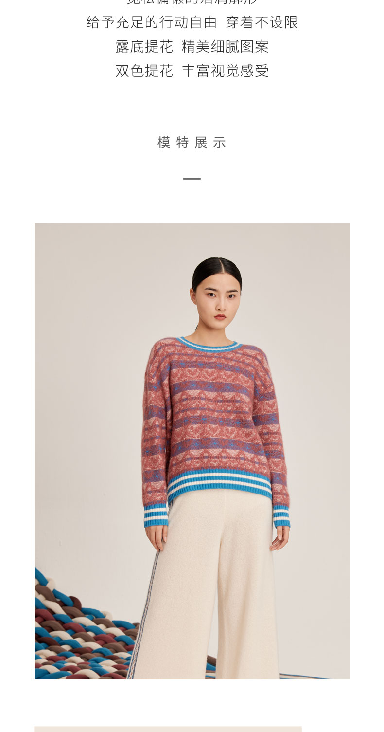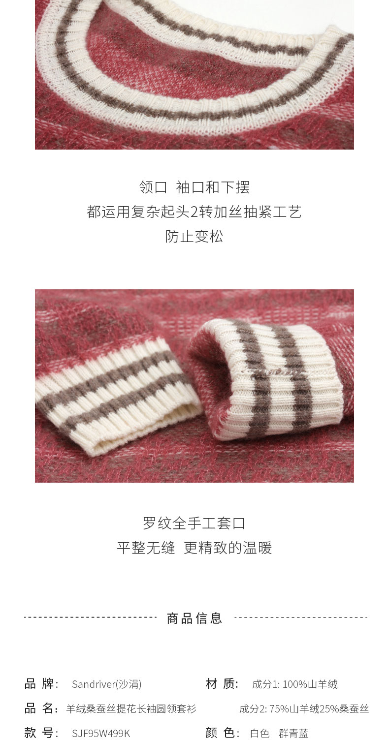 羊绒桑蚕丝提花长袖圆领套衫SJF95W499K