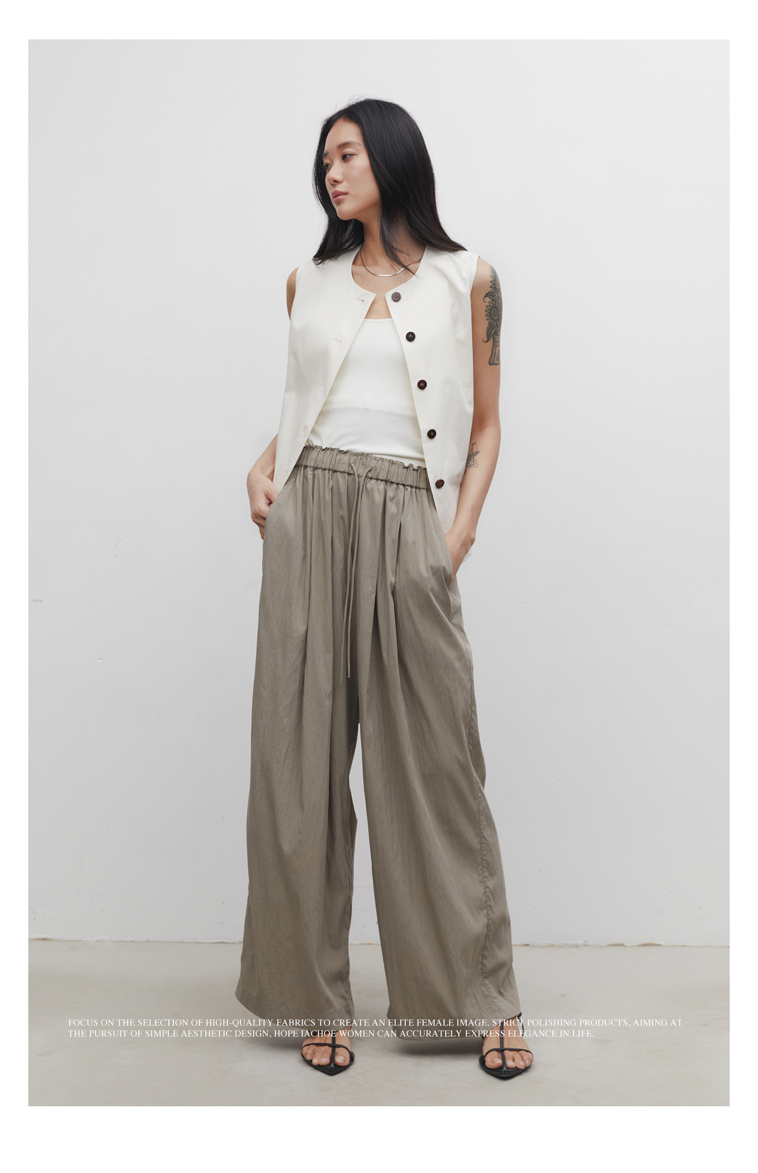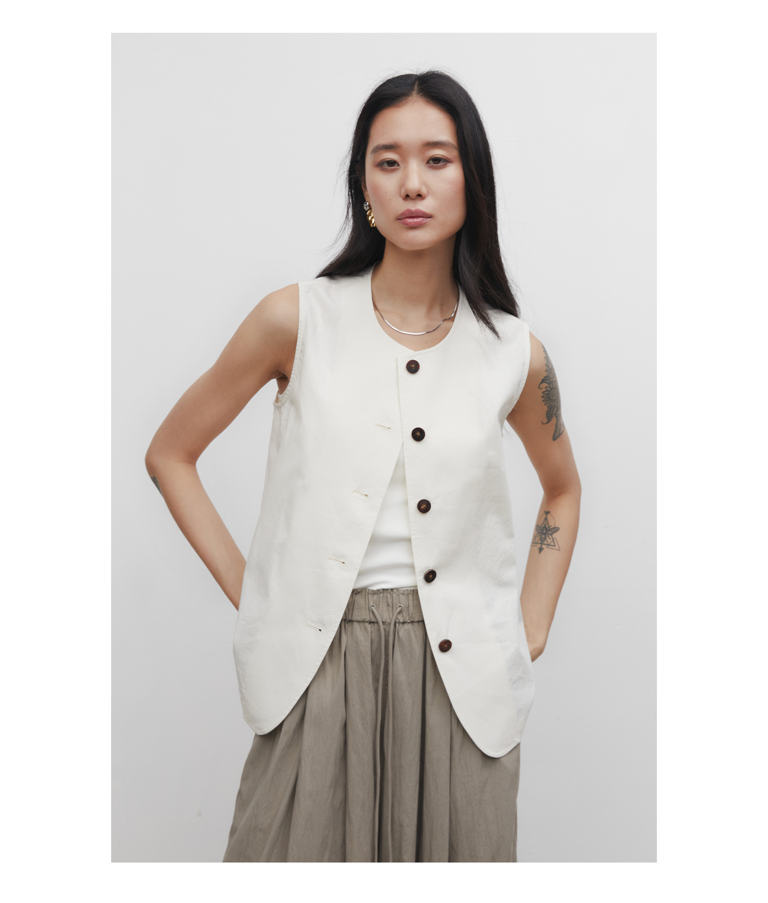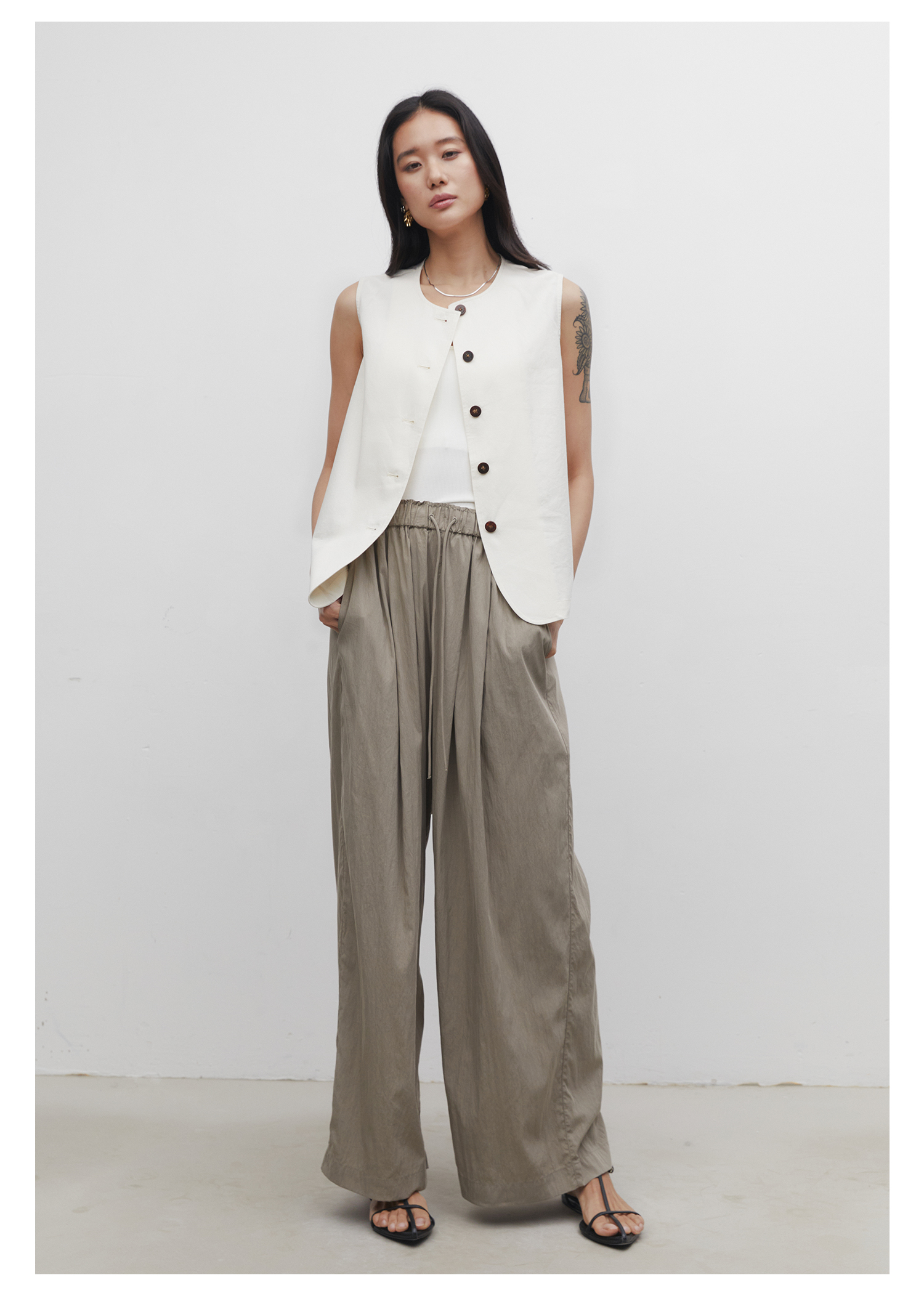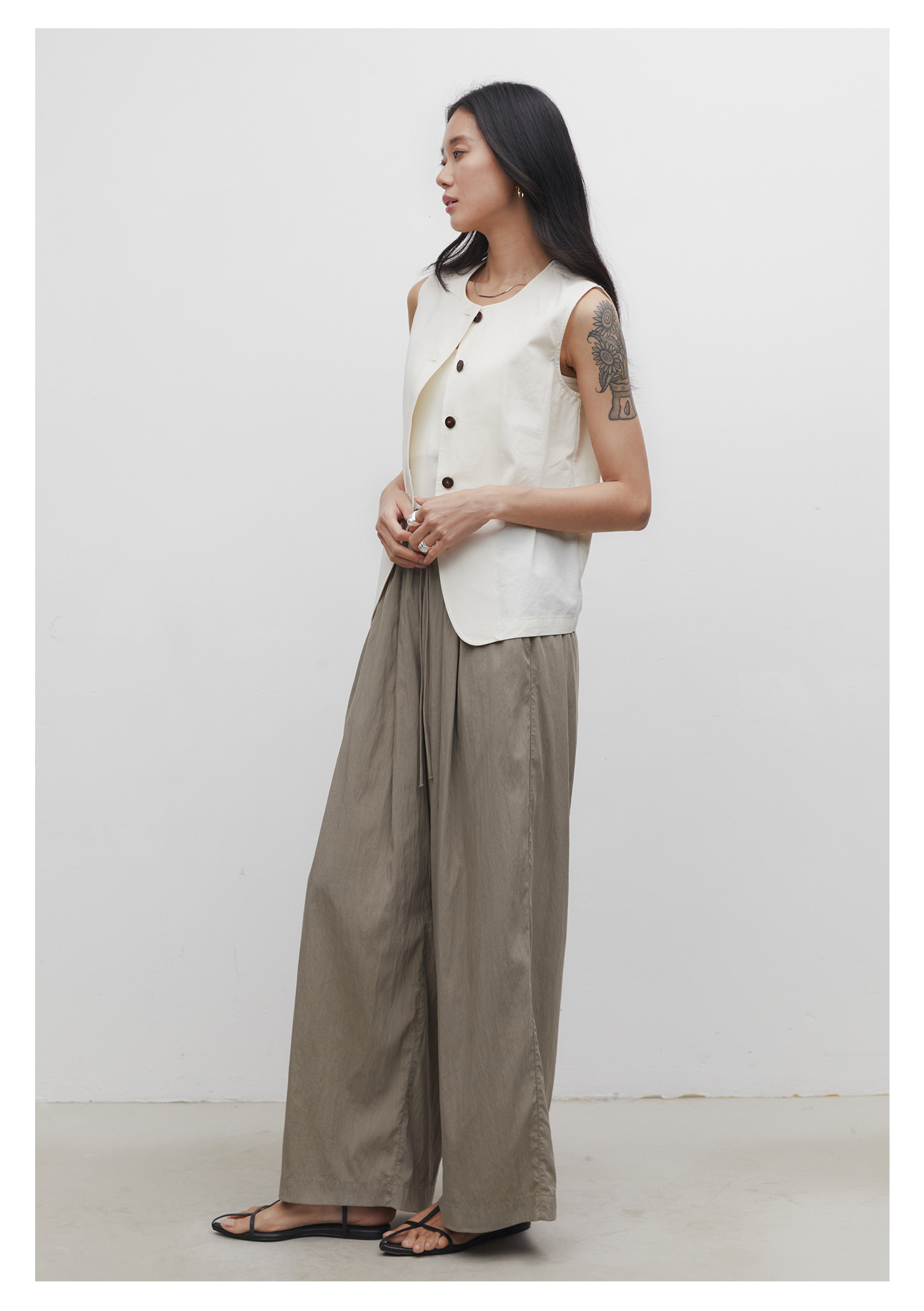 棉仓3521599004- 夏季静奢风灵地思羊毛单排扣圆领马甲小外套