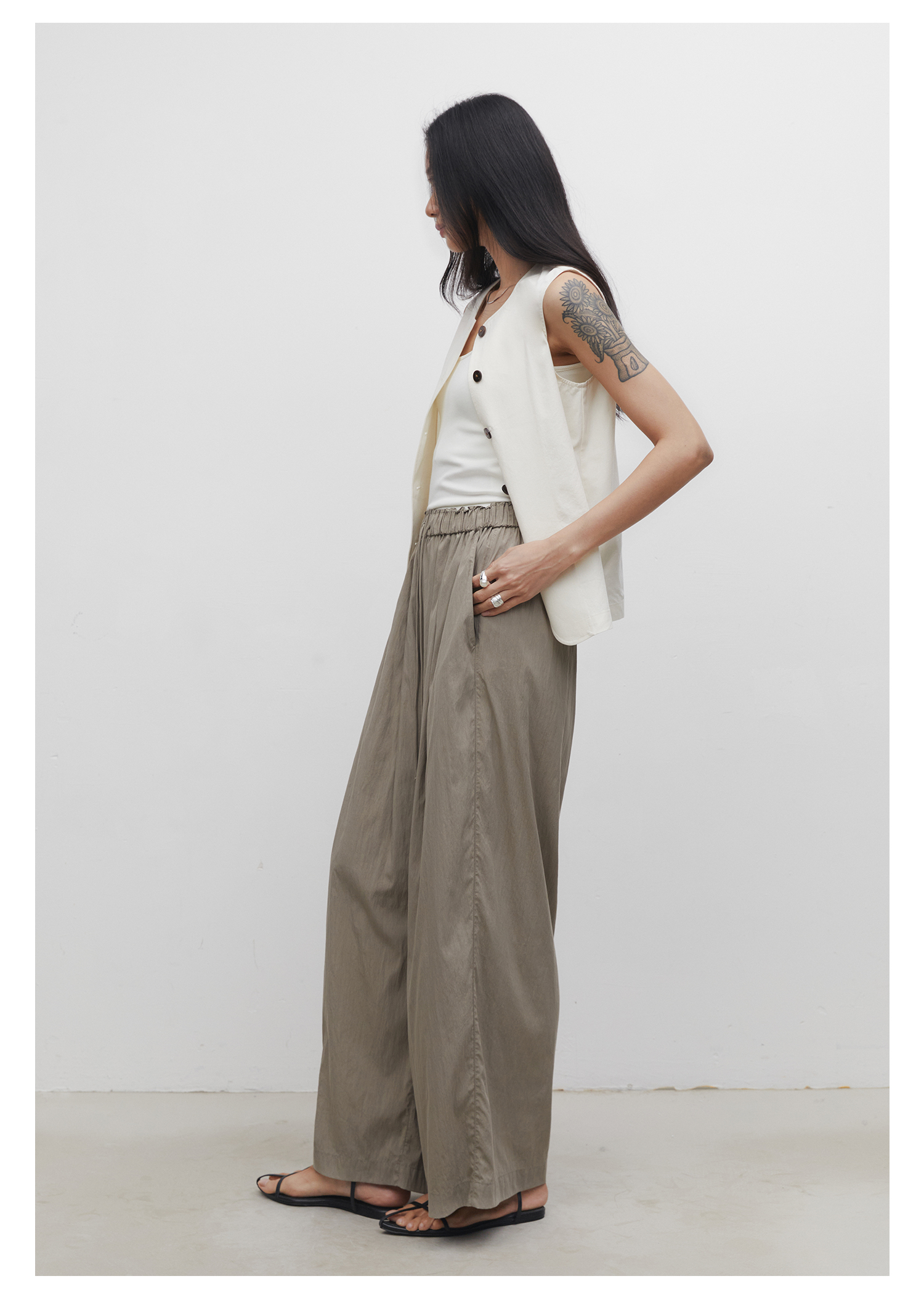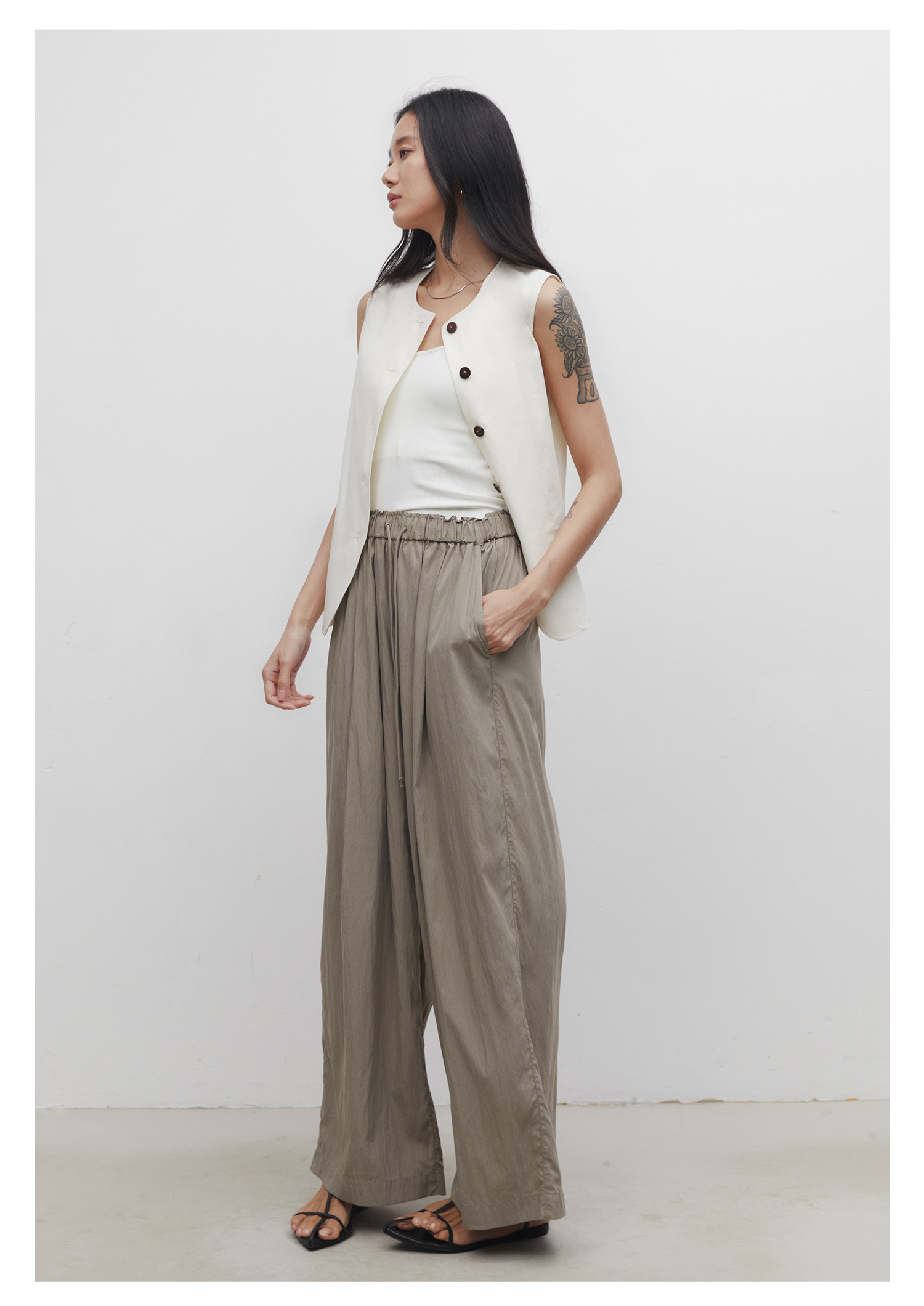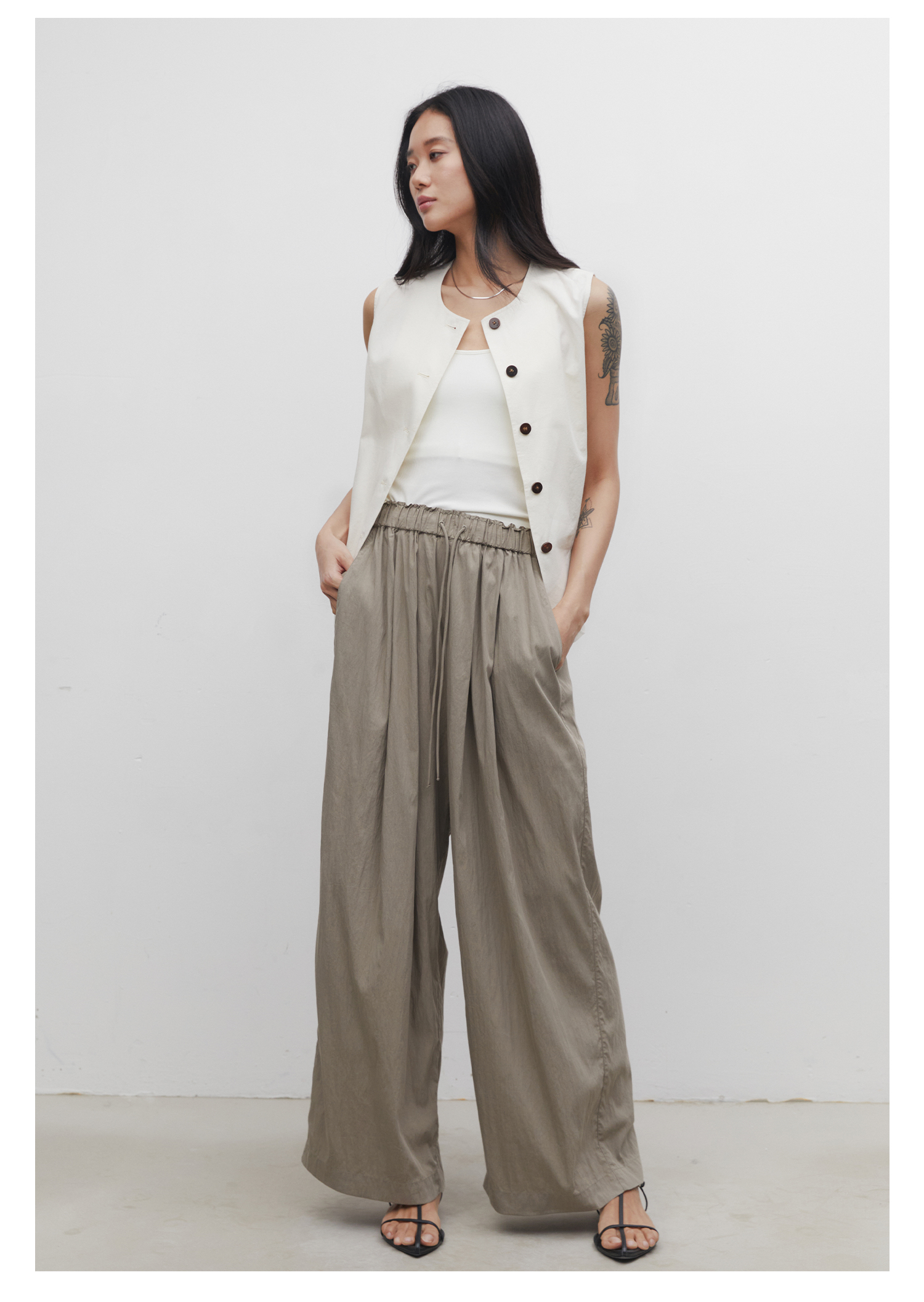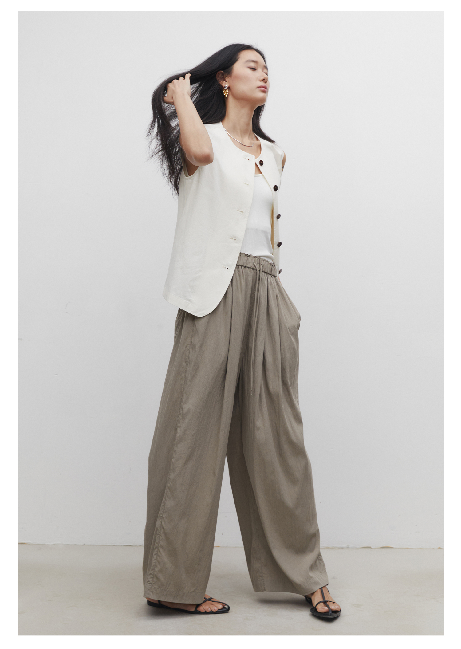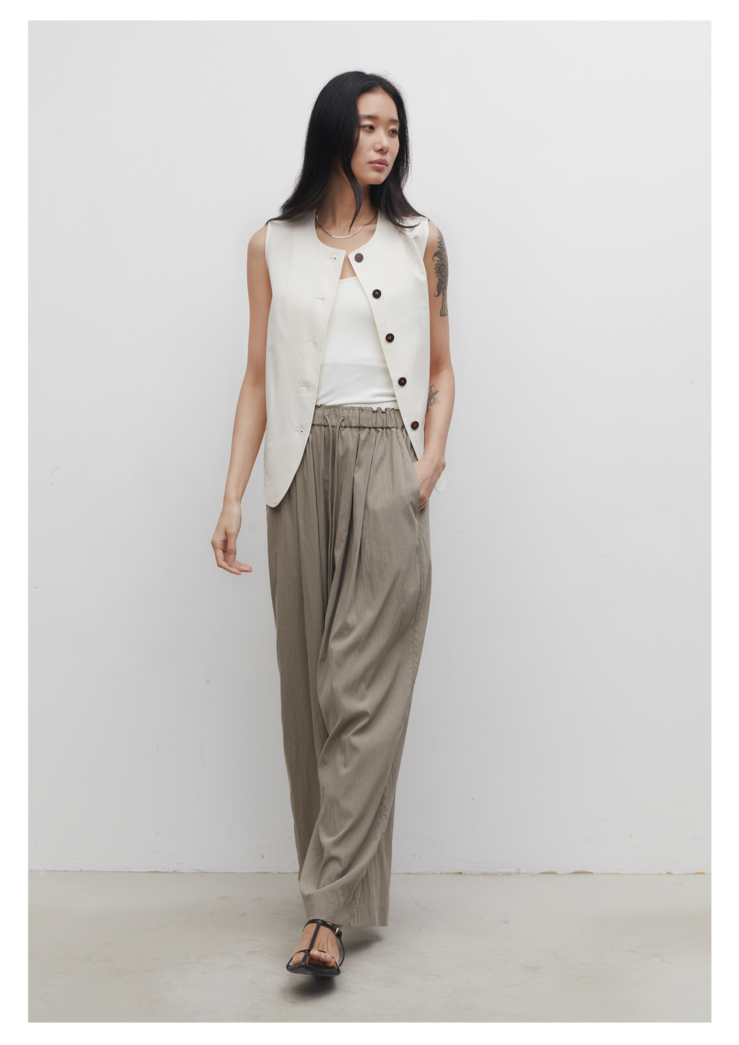 棉仓3521599004- 夏季静奢风灵地思羊毛单排扣圆领马甲小外套