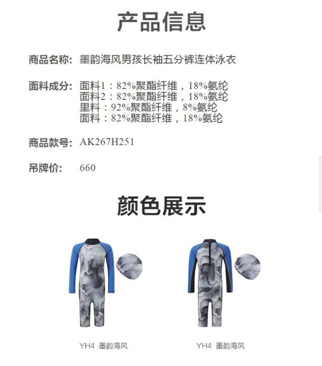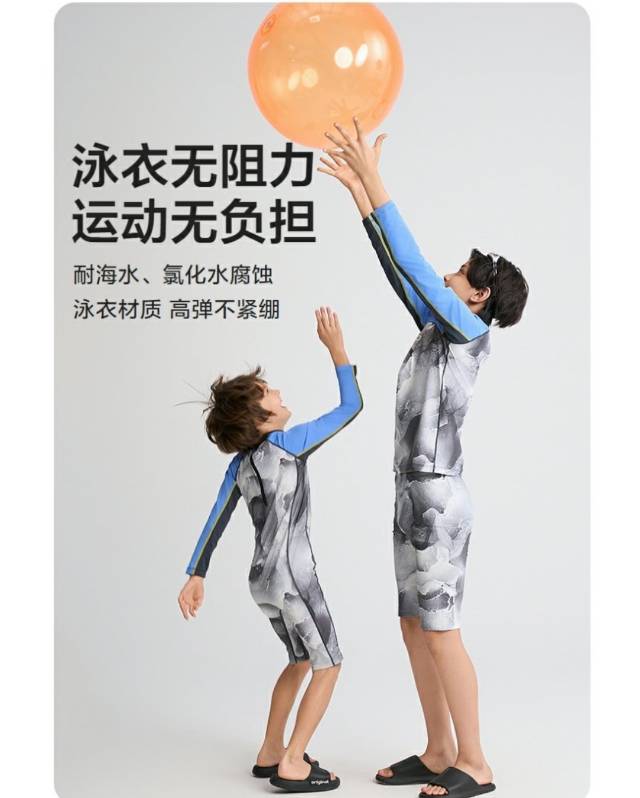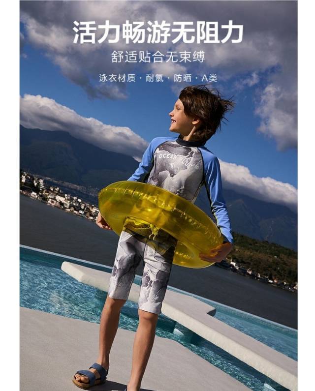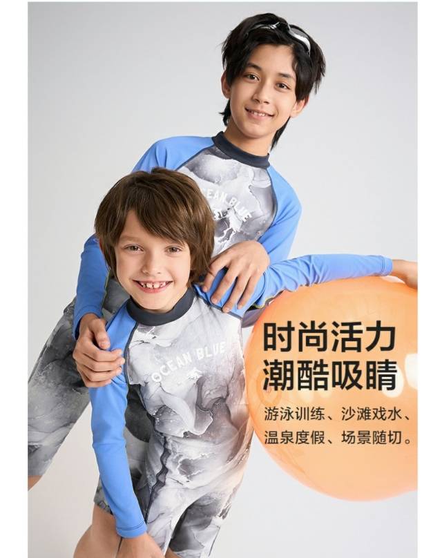 【春上新】8楼爱慕儿童Aimer Kids男孩2件装-墨韵海风长袖五分裤连体泳衣AK267H251,吊牌价660元