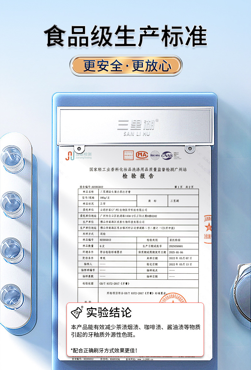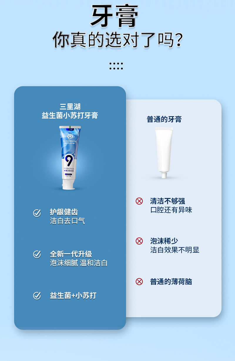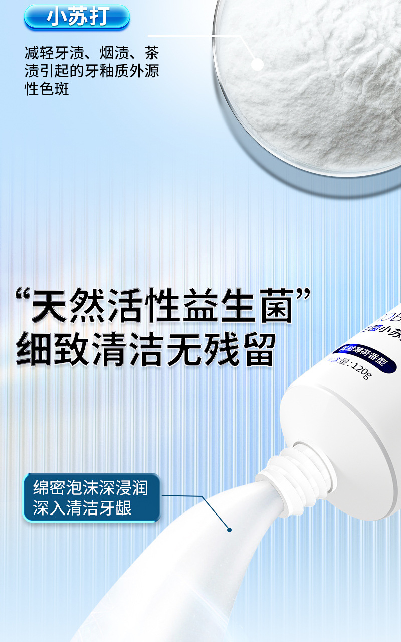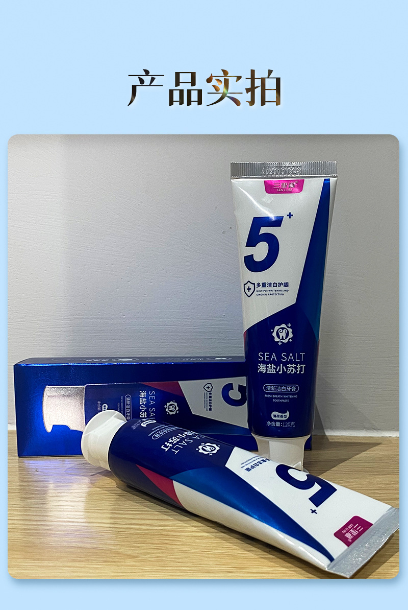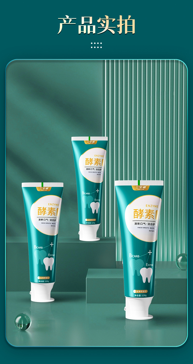 【3支】口腔护理牙膏、海盐清新洁白牙膏、益生菌小苏打牙膏、酵素牙膏、清新薄荷、120g/支、粤国牙膏网备字2023406319-2