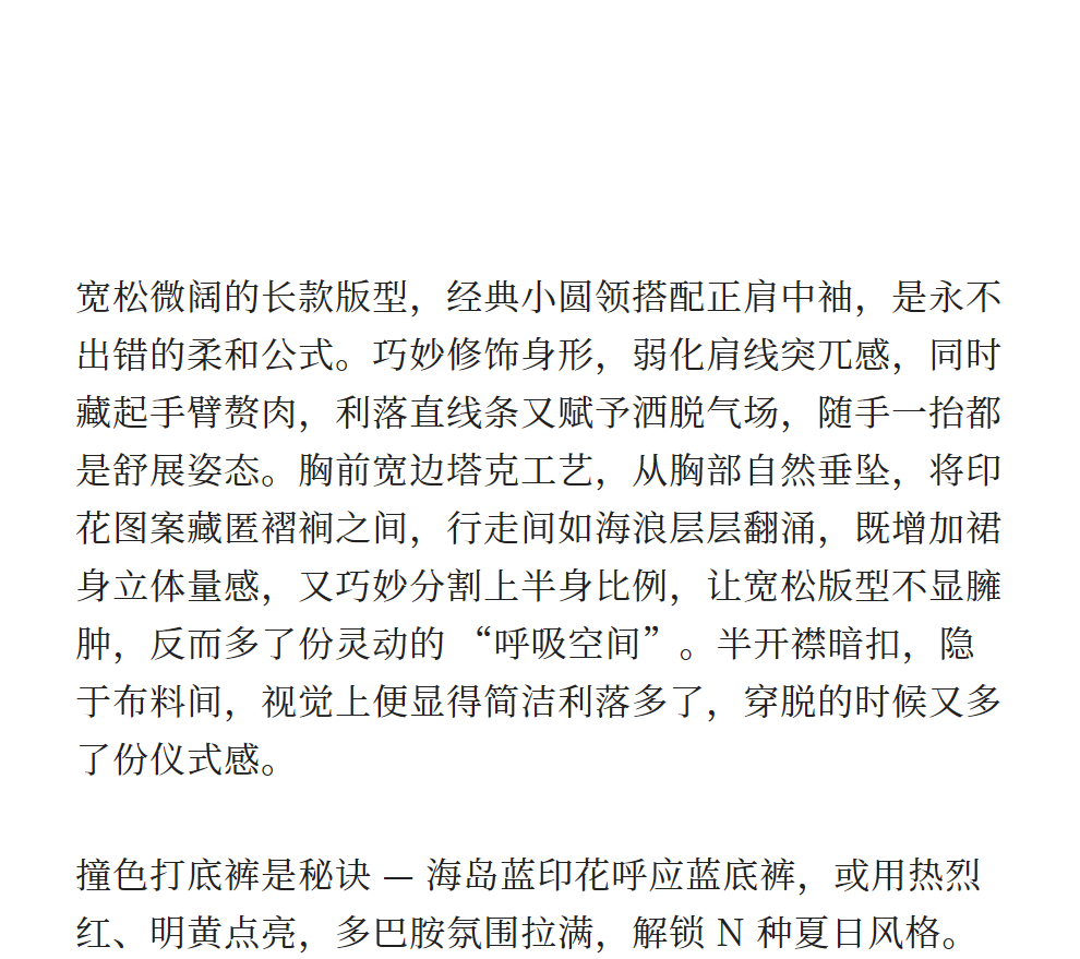 以天然亚麻为载体,融合热烈色彩与自在剪裁为身在城市、心怀远方的女性提供兼具美学与舒适的旅行着装