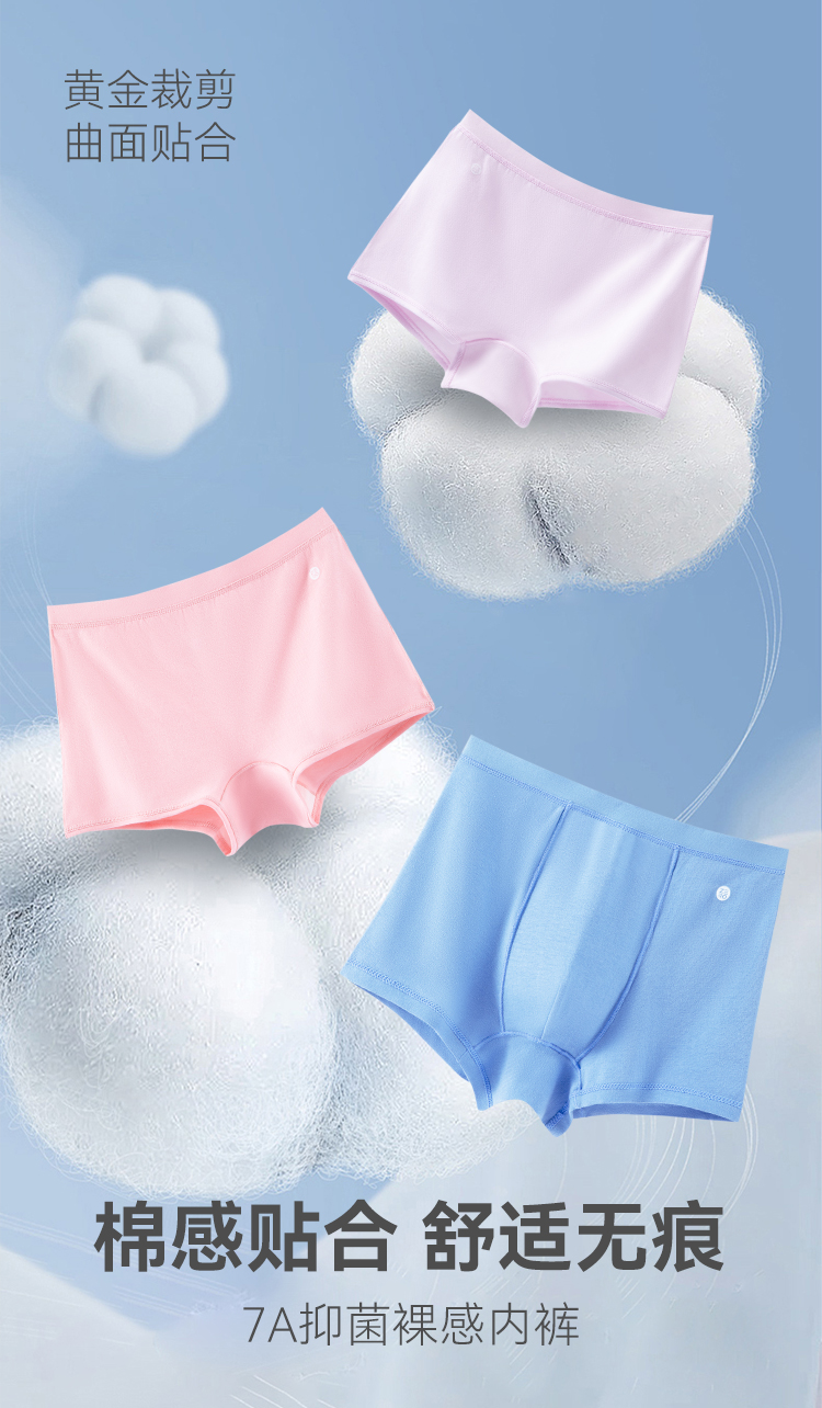 【儿童精梳棉3条】米乐鱼7A抑菌儿童内裤精梳棉透气抑菌内裤男女宝