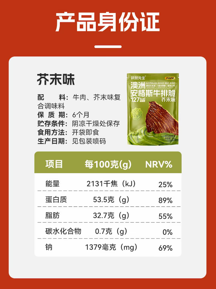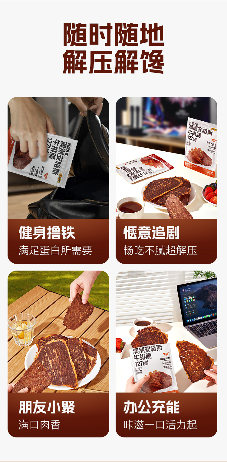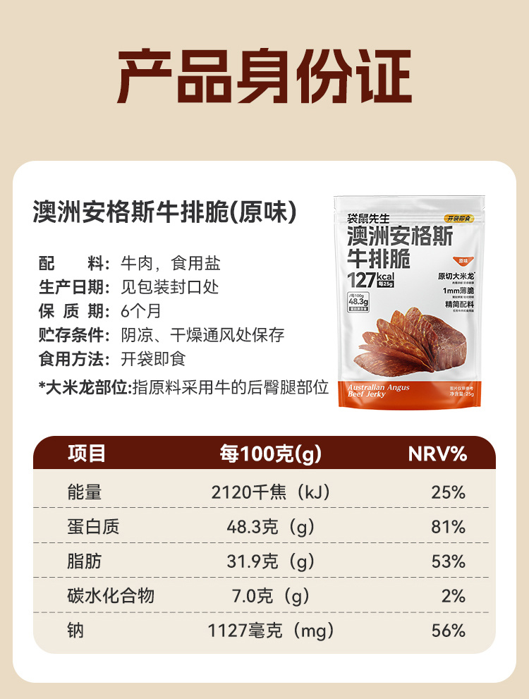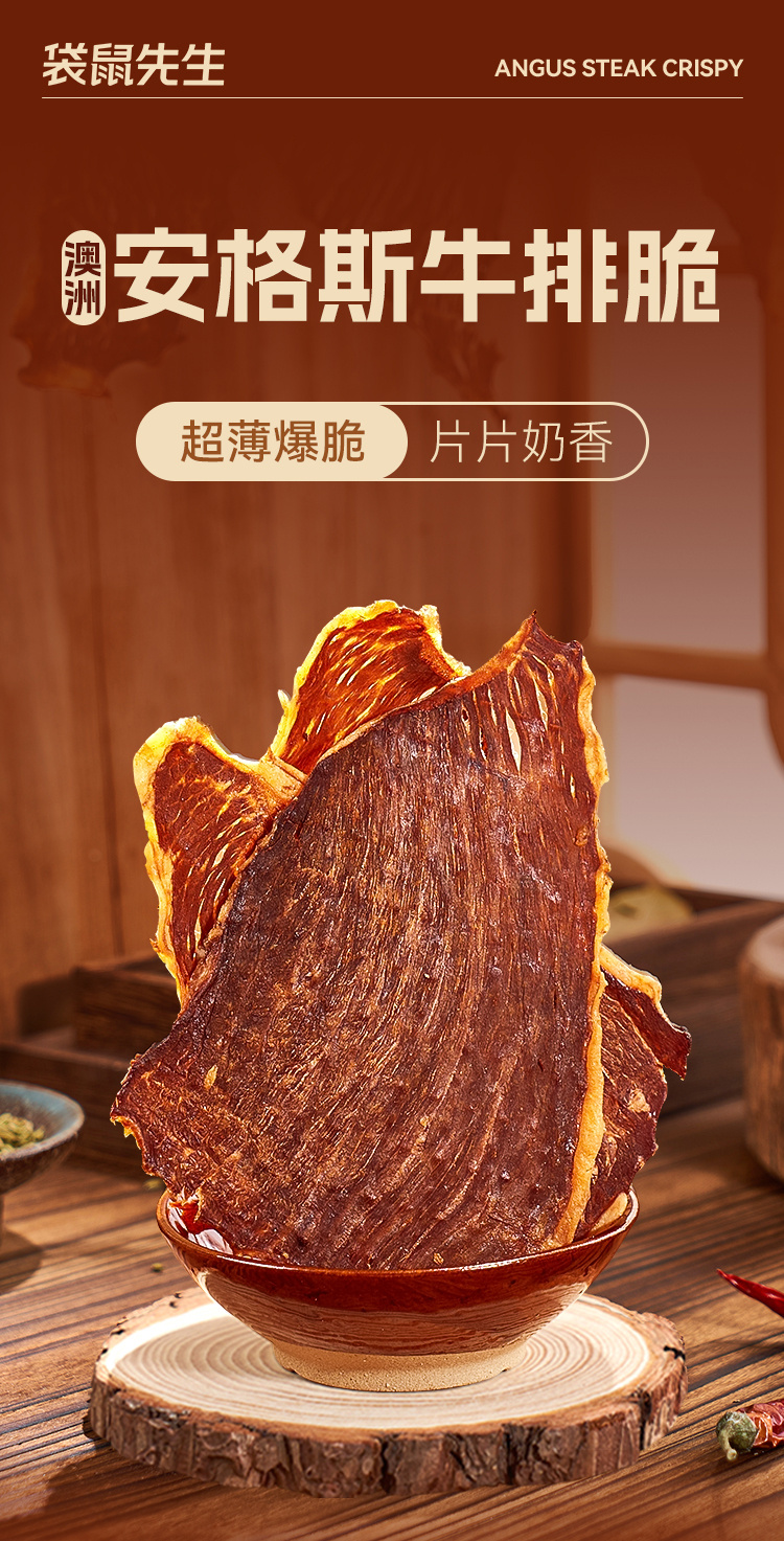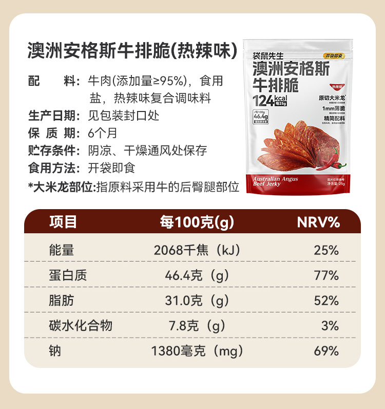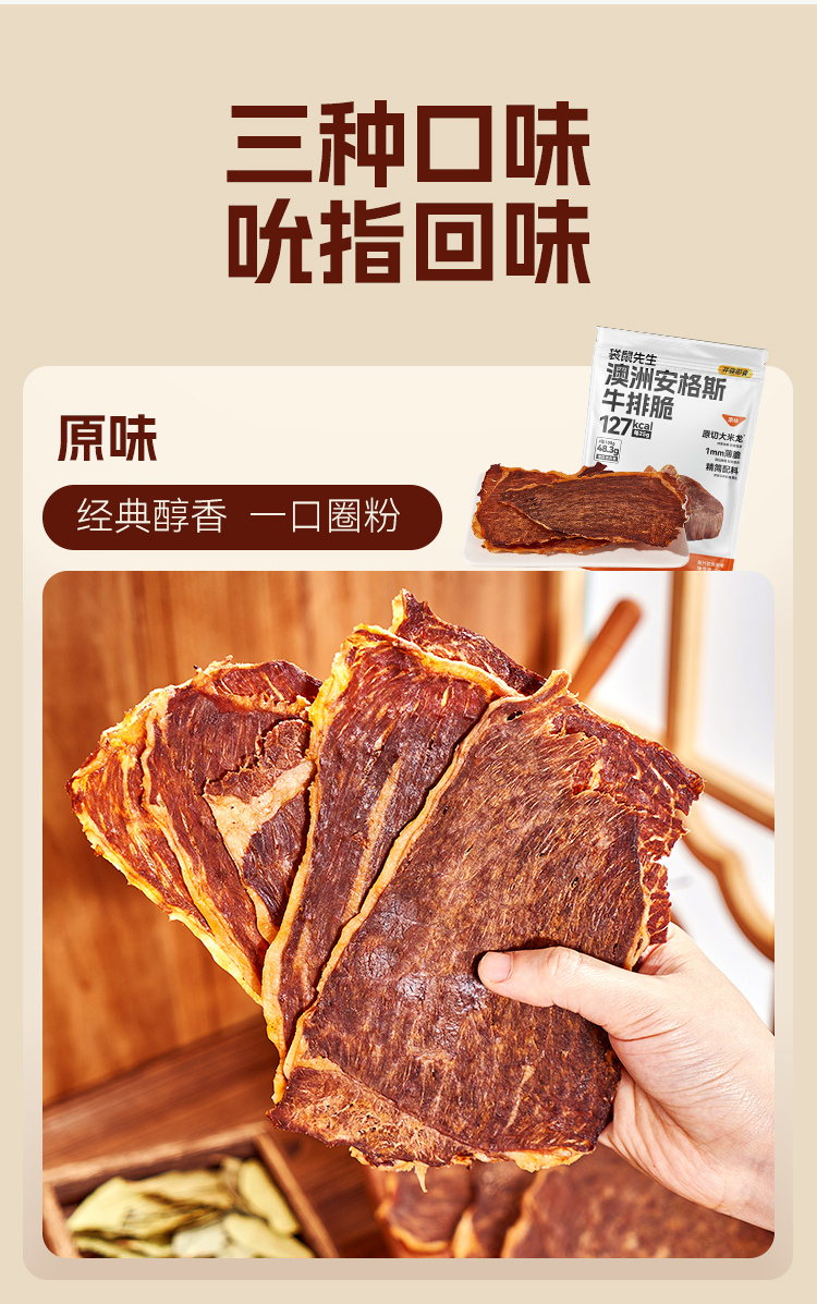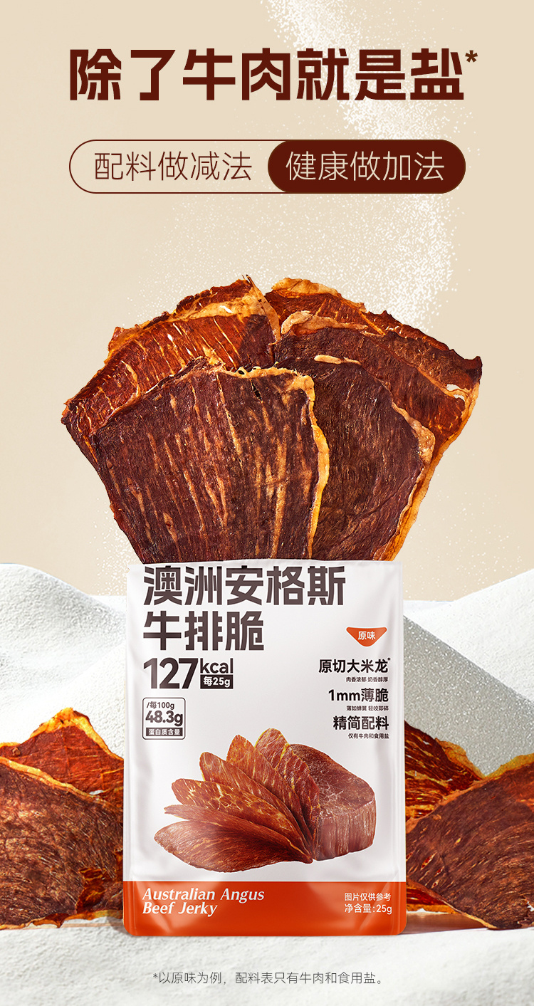 【超薄爆脆 高蛋白】袋鼠先生 澳洲安格斯牛排脆超薄牛肉片健身零食25g/袋 多种口味