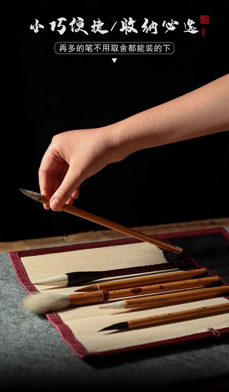 毛笔笔帘书法专用大中小号便携古风竹制收纳保护毛笔卷笔文房四宝