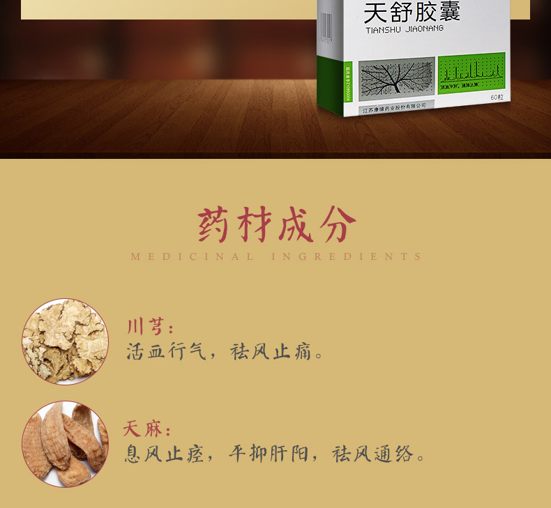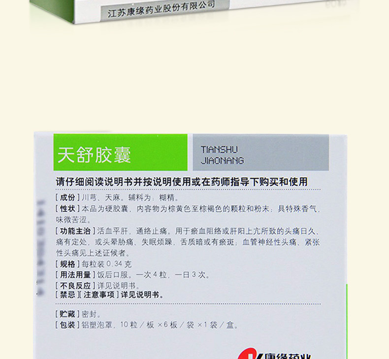 康缘 天舒胶囊60粒头晕活血平肝通络止痛失眠烦躁血管神经性头痛