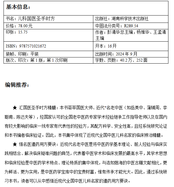 名老中医临证必选方剂系列丛书:儿科国医圣手时方 汇国医圣手时方精髓悟名医遣药用方要诀