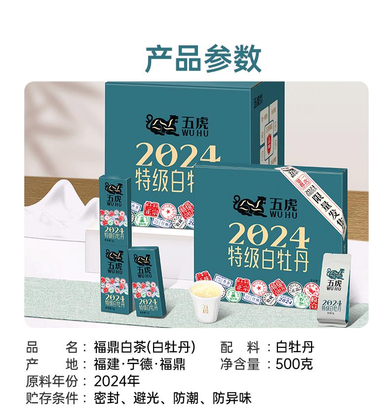 【年货礼盒】茶叶 白牡丹 白茶 2024新茶 年货礼盒 年货礼盒 福鼎白茶 茶饮 五虎 100g