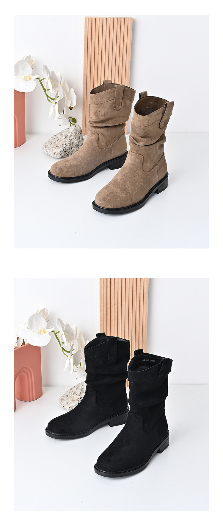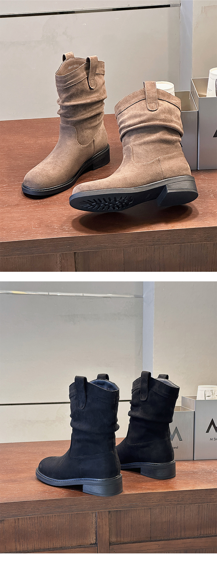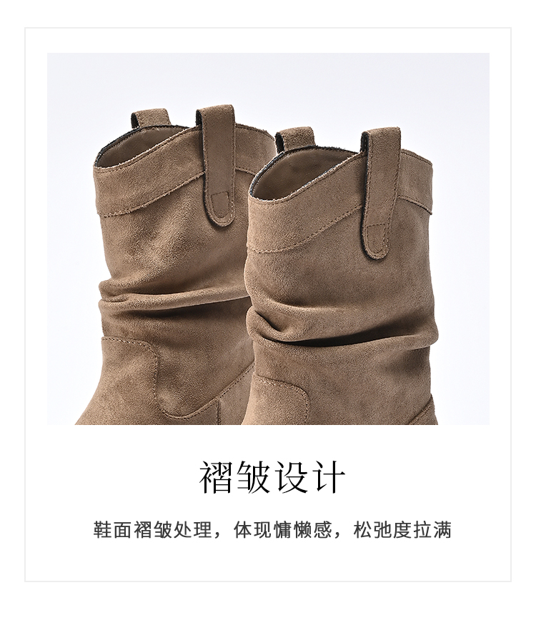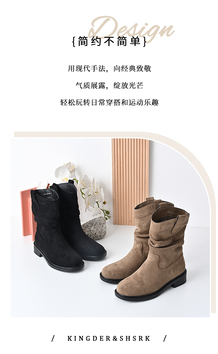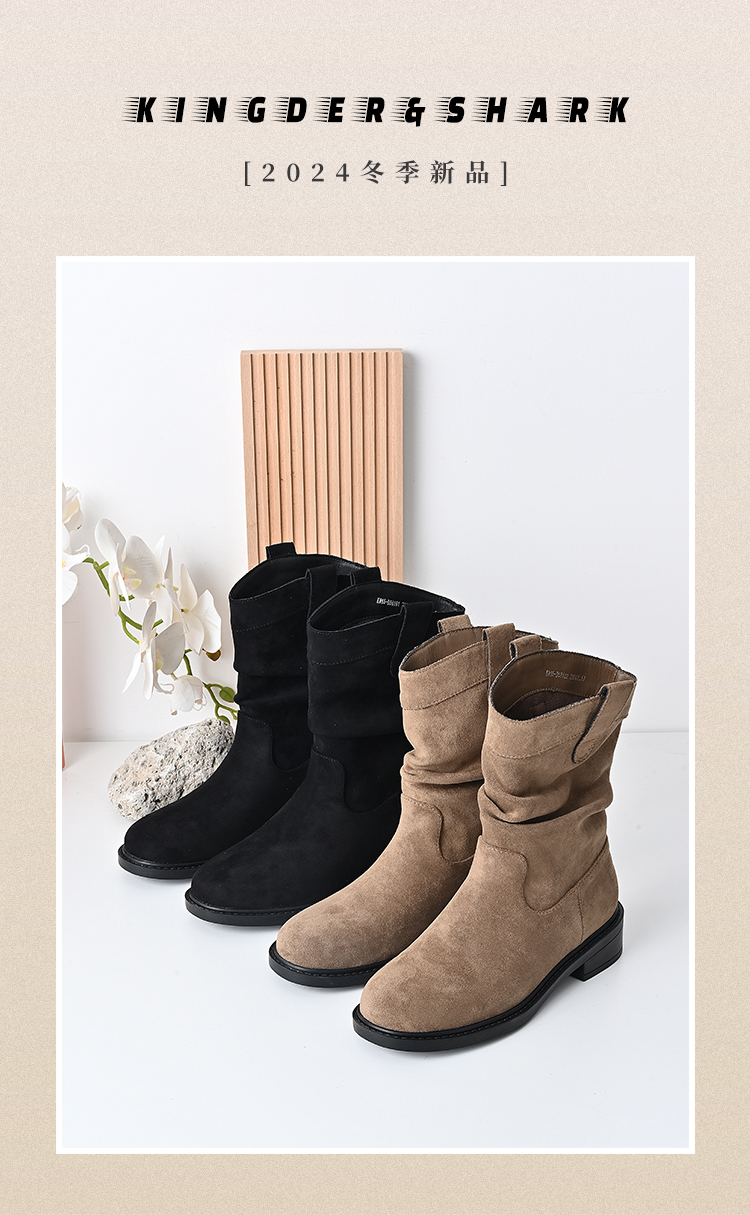 经典鲨2024年冬新款百搭时尚圆头潮流时尚中筒褶皱堆堆靴女KW65-D58181