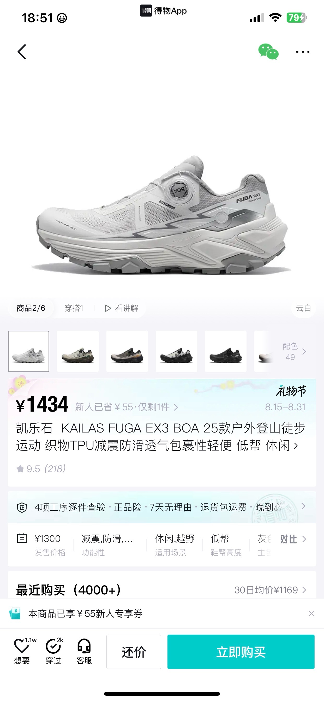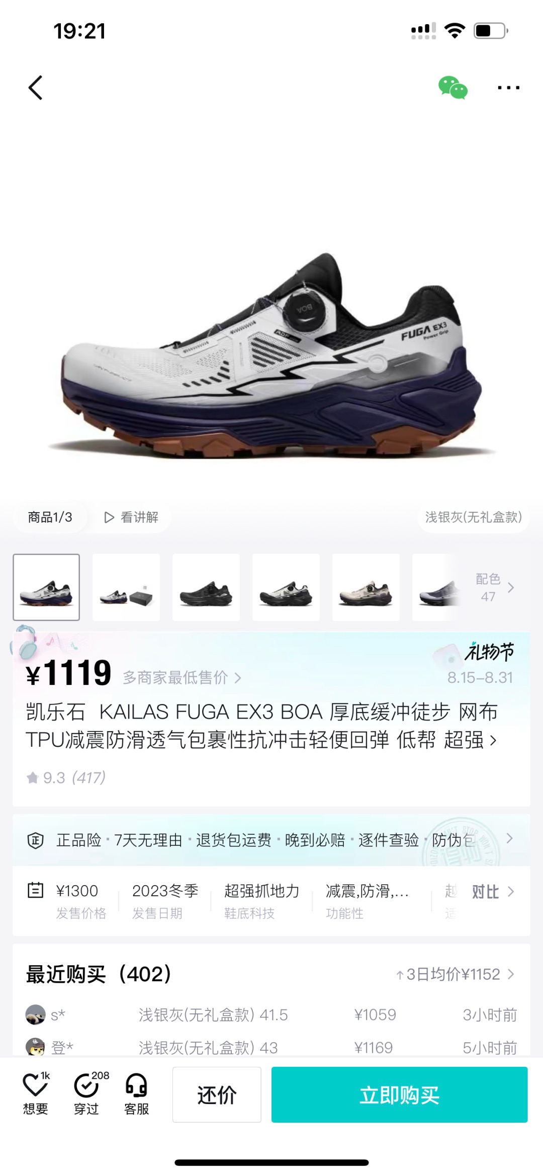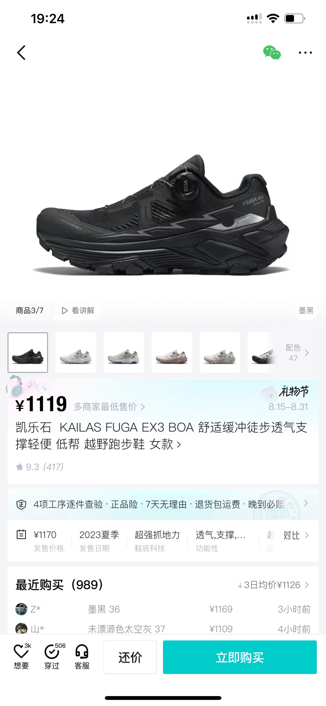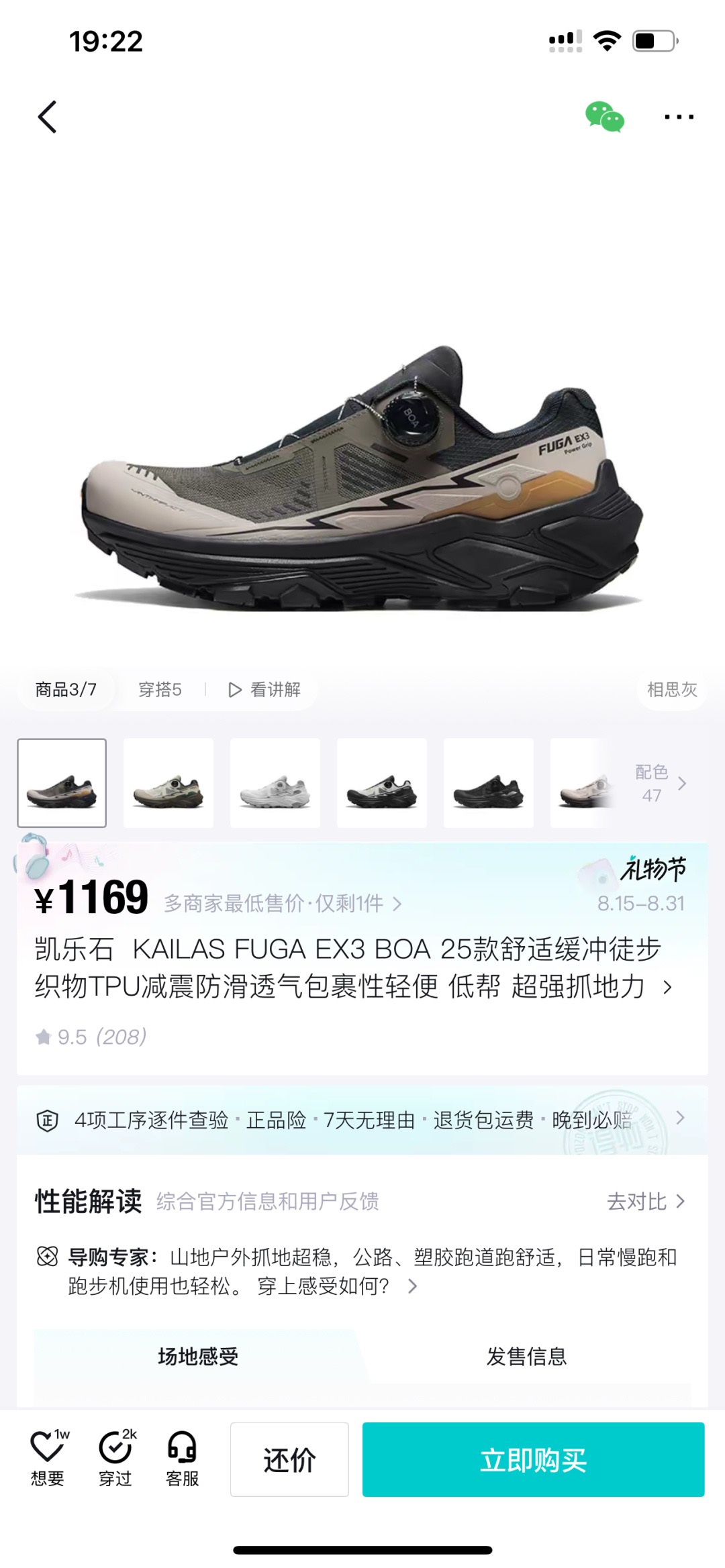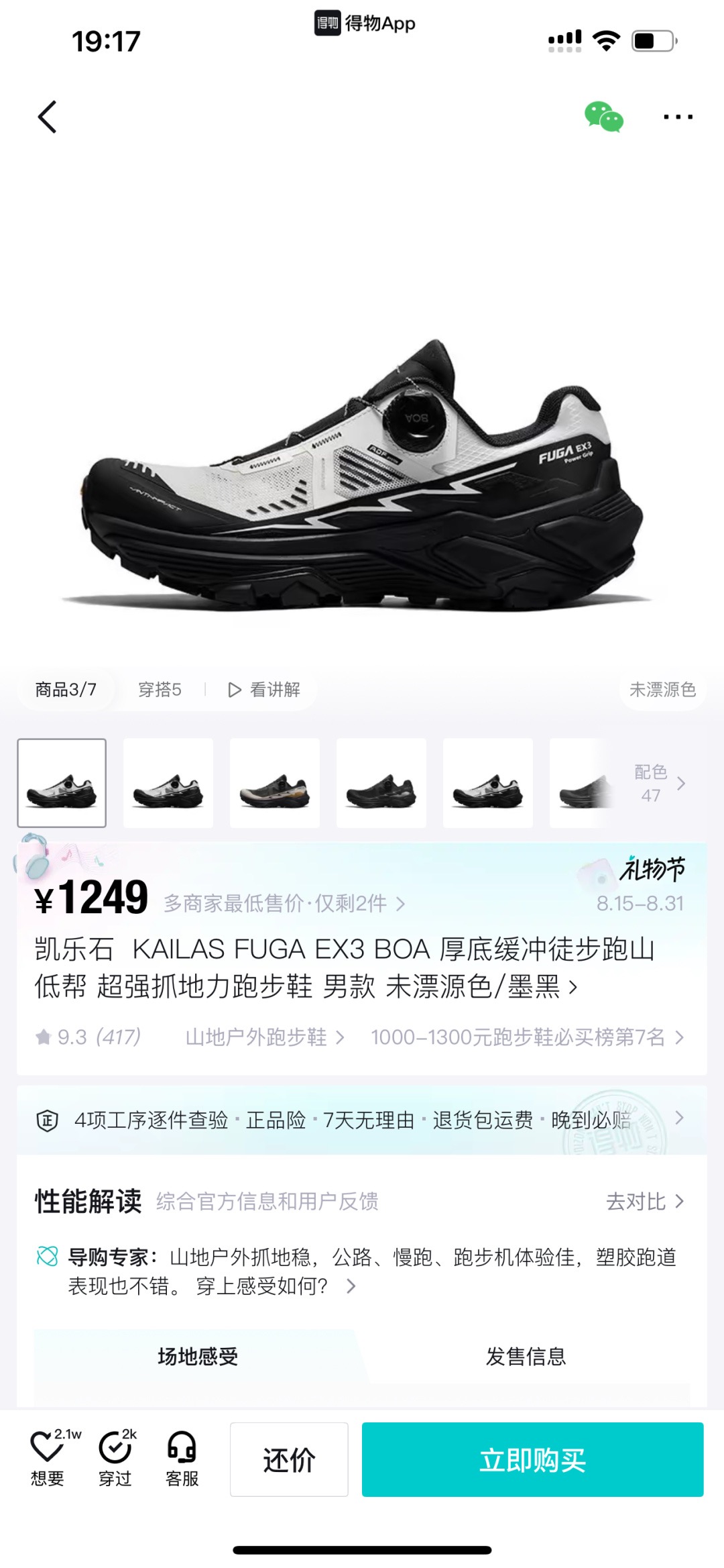 偏小!建议拍大一码!凯乐石KAILAS FUGA EX3 BOA越野机能跑鞋