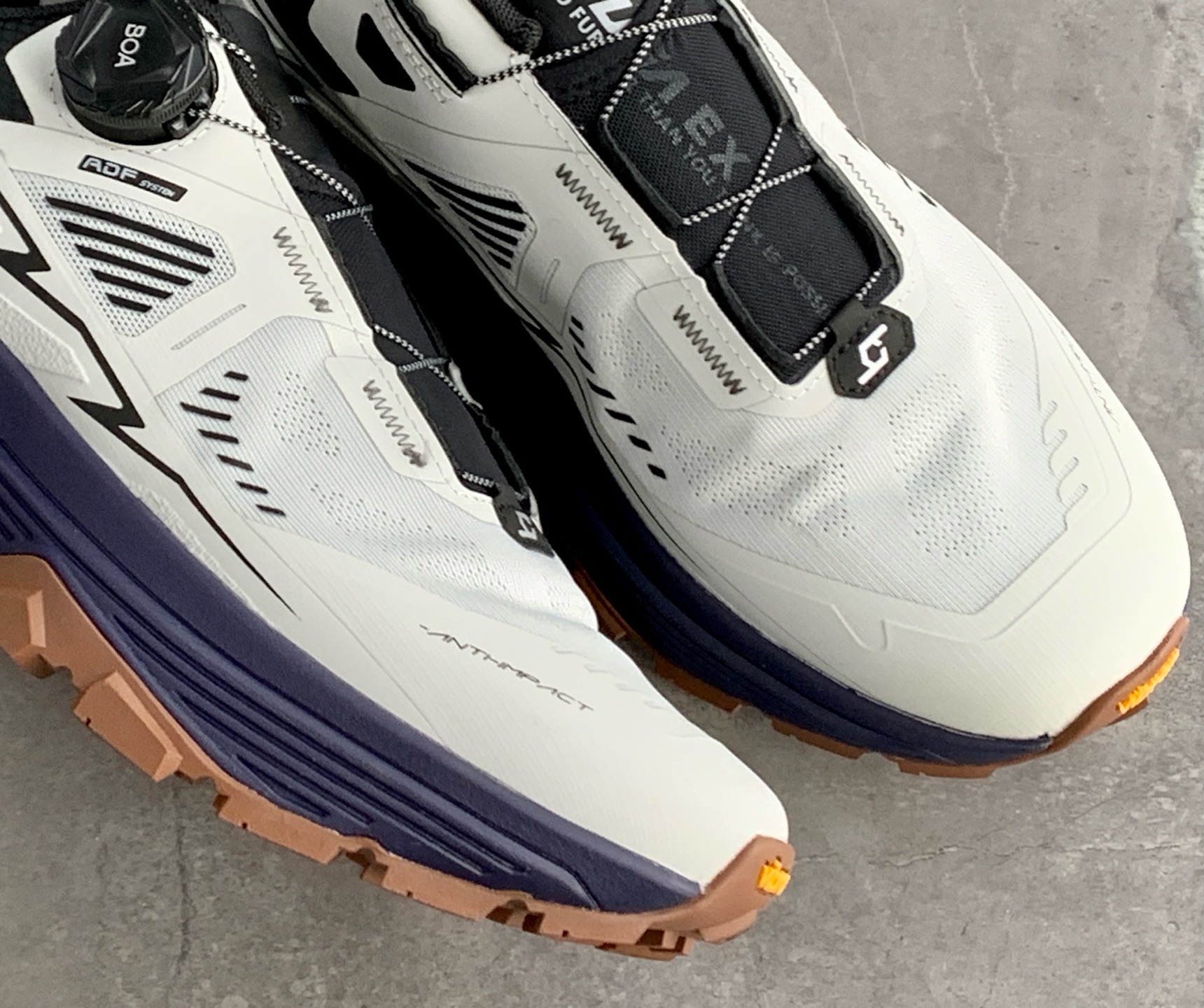 快速系带系统:采用AWS2.0/3.0快速旋钮 防止下坡顶脚,另外四点防水套固定设计,让你在北方比较干燥的小路或是在戈壁赛中可以自由自在的奔跑。