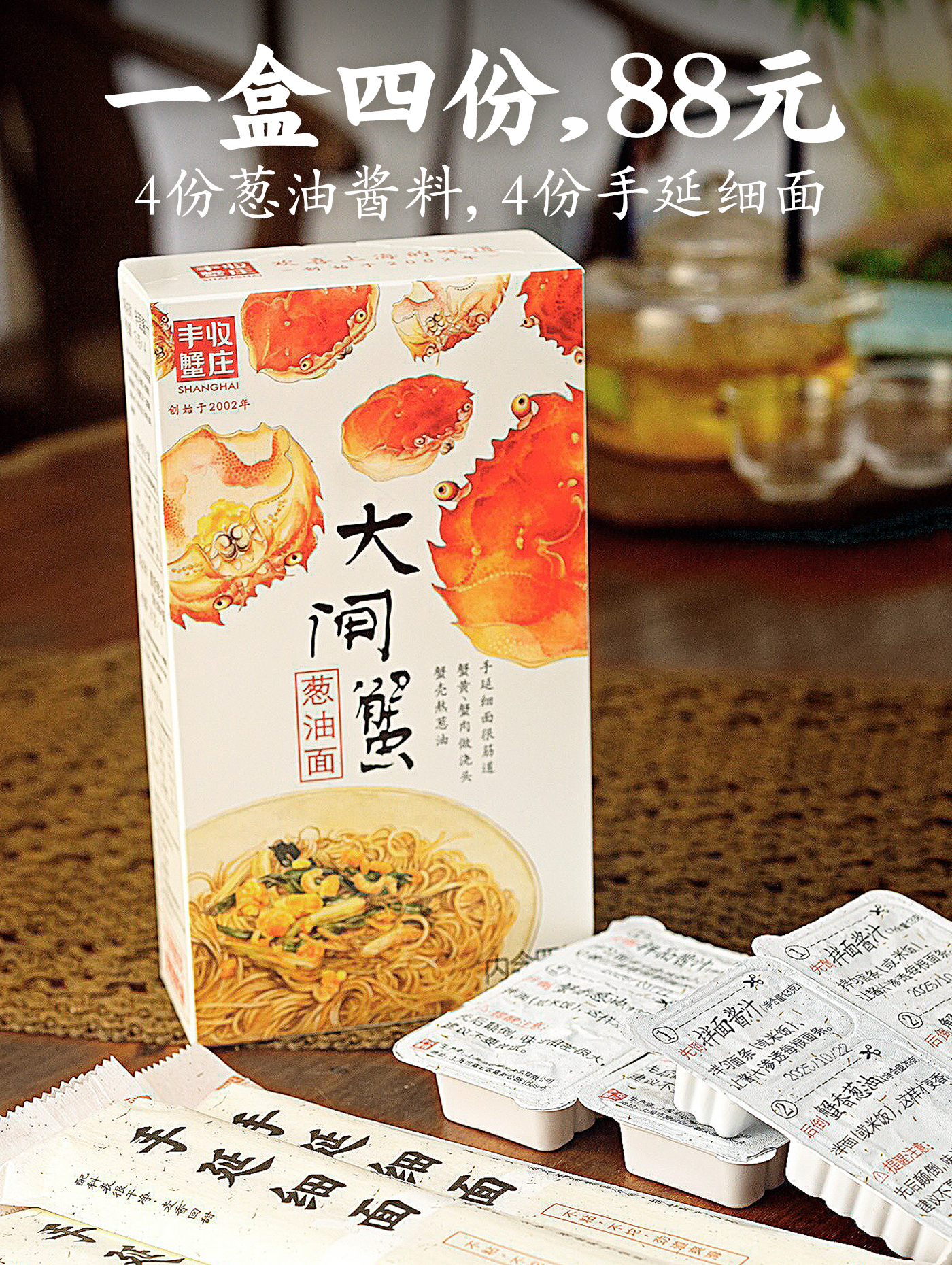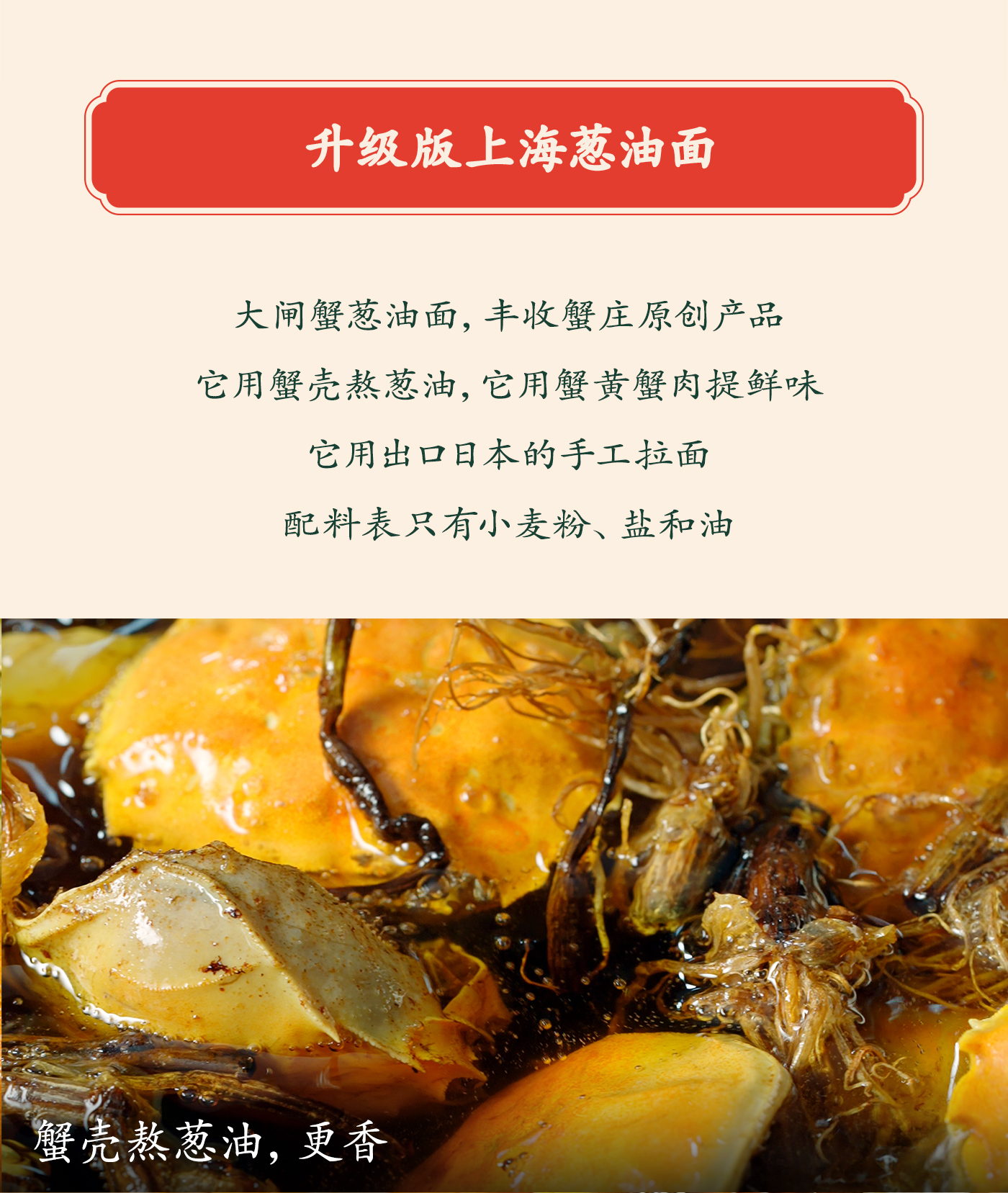丰收蟹庄 上海大闸蟹葱油面 (出口日本品质,无化学添加剂,手工制作,健康安全的美味)