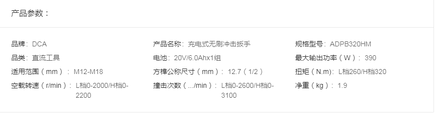 DCA东成 充电式无刷冲击扳手 ADPB320HM