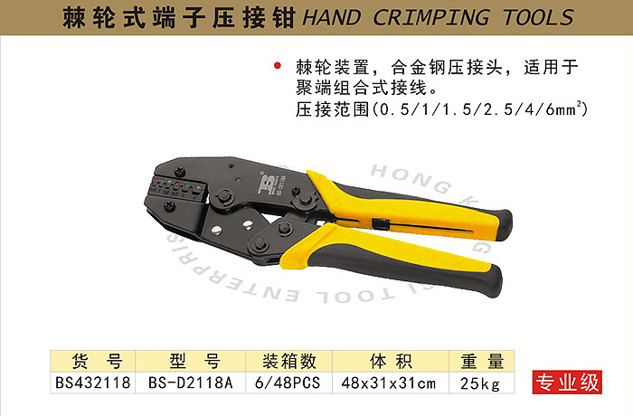 波斯 棘轮式端子压接钳 适用于聚端组合式接线 0.5-6mm² BS432118