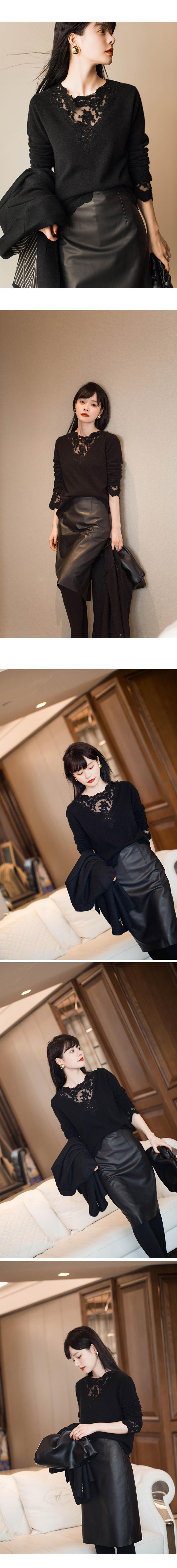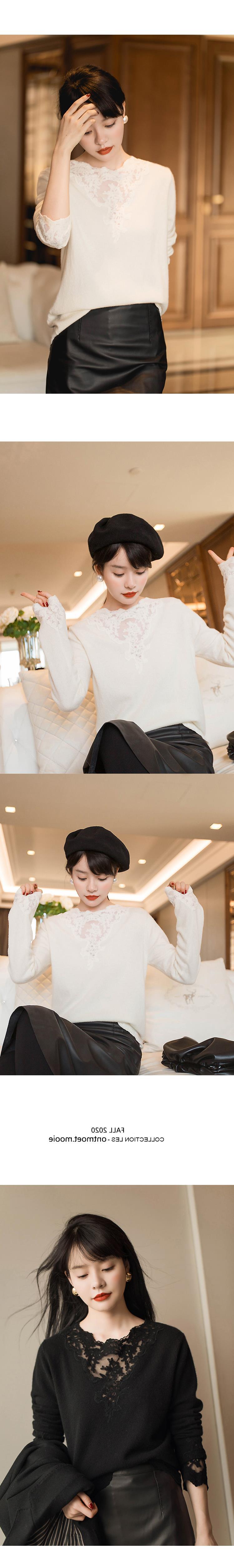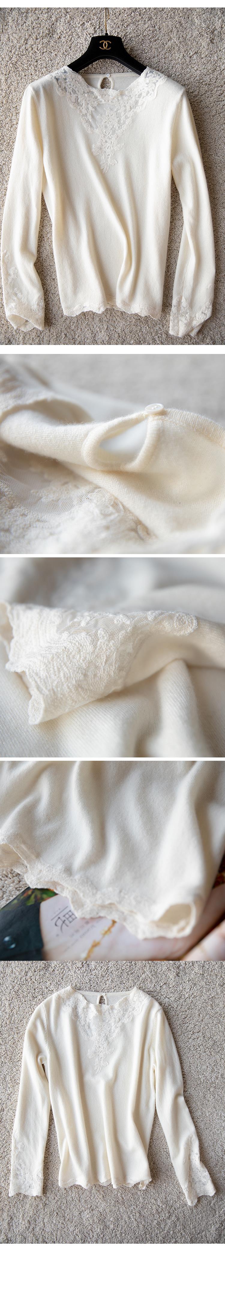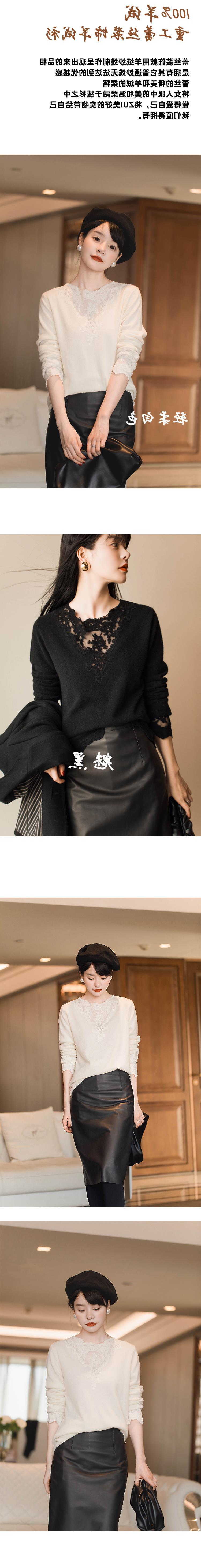 【春秋薄款,蕾丝拼接羊毛衫】新款蕾丝全羊毛针织衫,洋气亲肤透气,内搭显瘦长袖绣花羊毛衫QQ