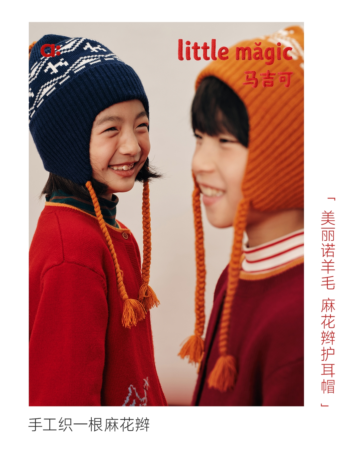 【春Vol.0】allblu幼岚美丽诺羊毛【麻花辫护耳帽】儿童帽子25秋冬新品保暖ZY