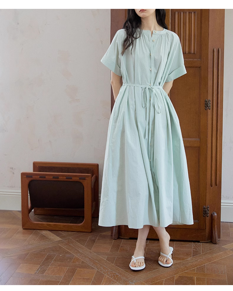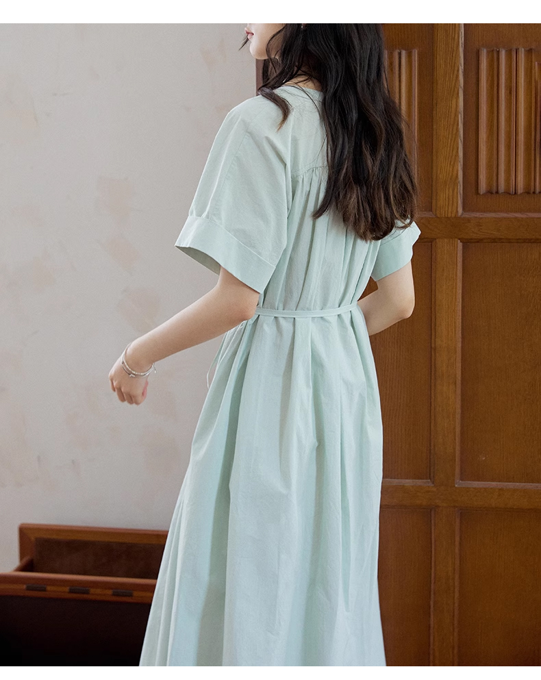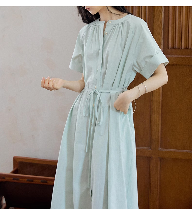裁缝学苑AQ344中长款收腰系带短袖连衣裙纸样衬衫裙女装裙子样板