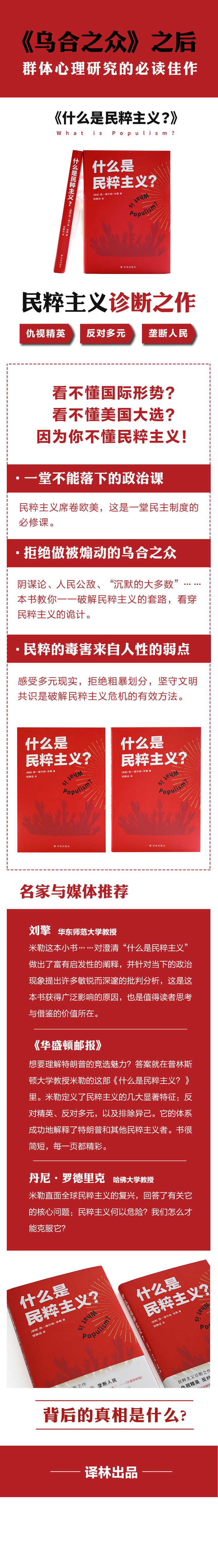 米勒定义了民粹主义的几大显著特征:反对精英、反对多元,以及排除异己。它的体系成功地解释了民粹主义者。书很简短,每一页都精彩。