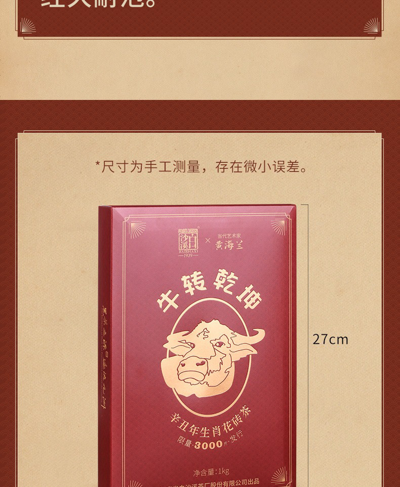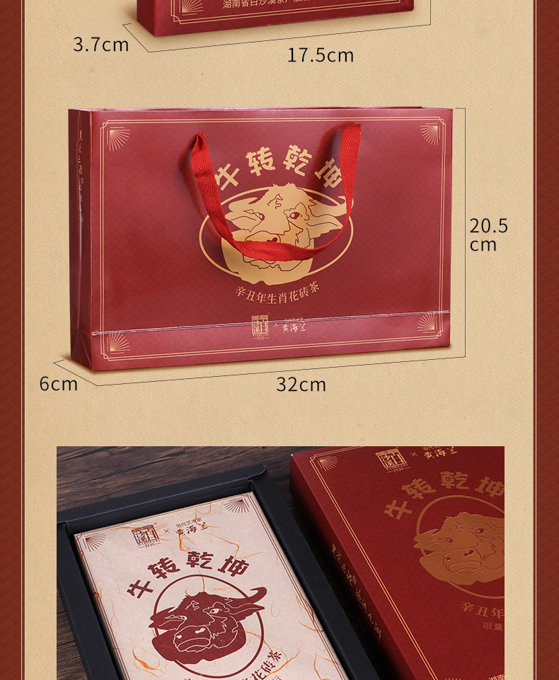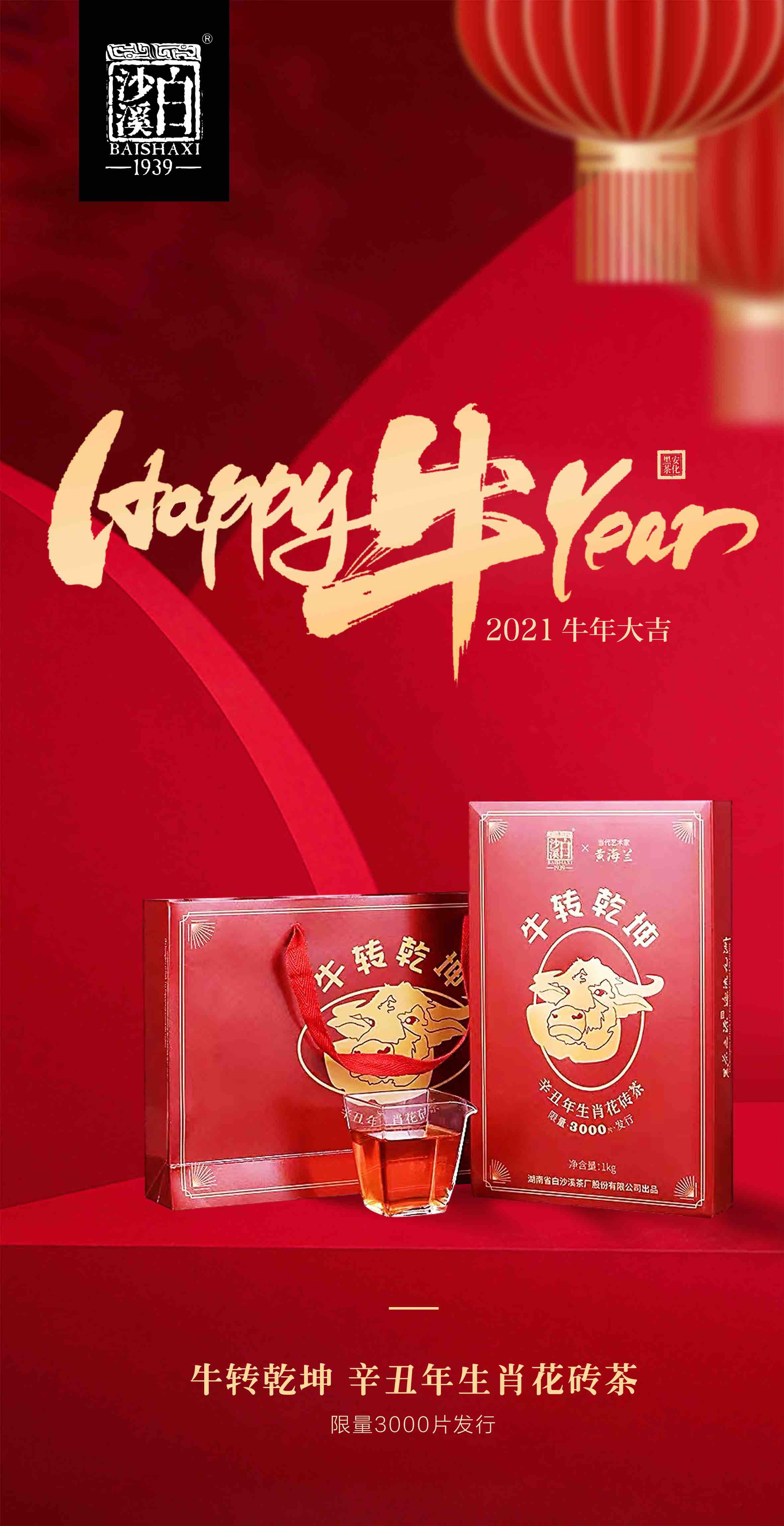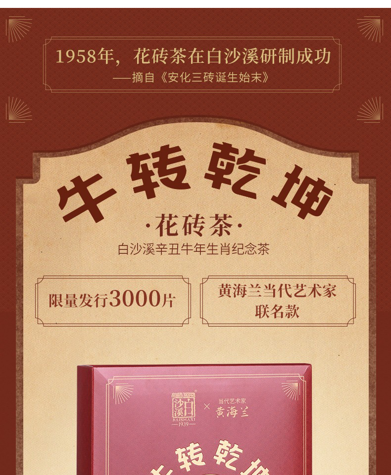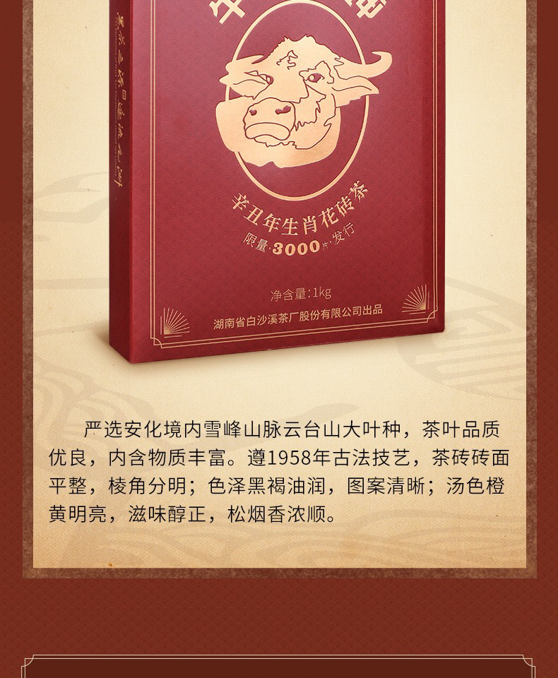 年货节|安化黑茶湖南安化黑茶·白沙溪生肖【牛转乾坤】正宗花砖茶1kg 神牛护佑,牛转乾坤