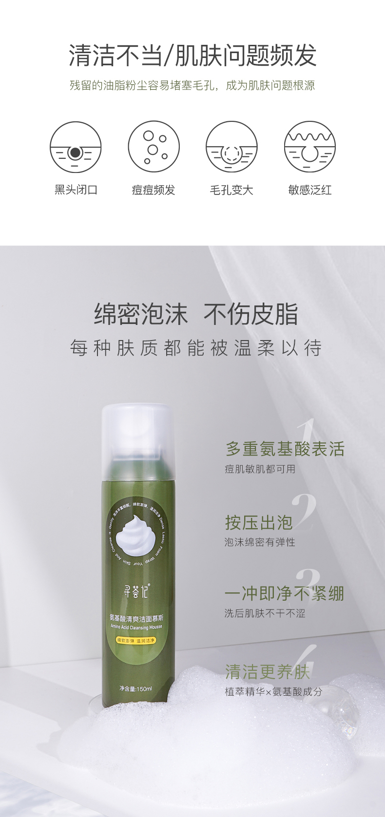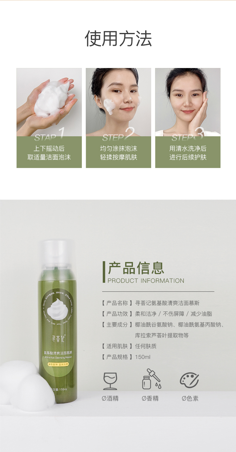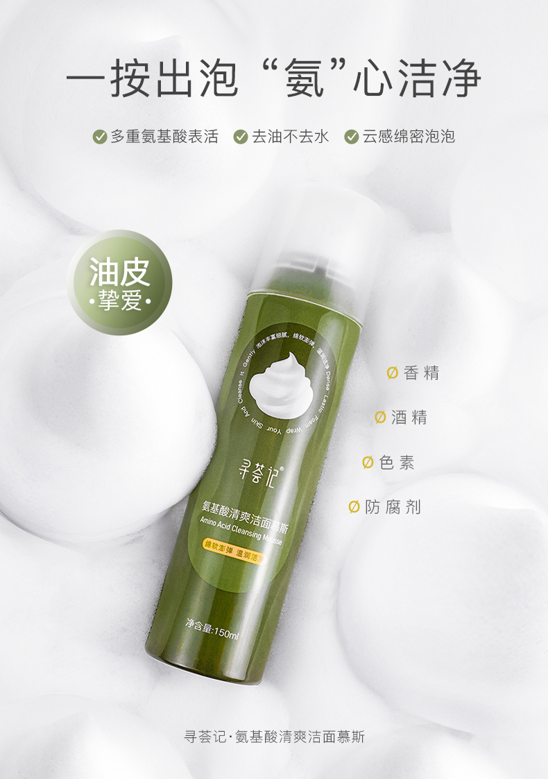 寻荟记氨基酸洁面摩丝泡沫洗面奶慕斯150ml男女温和清洁绵密控油