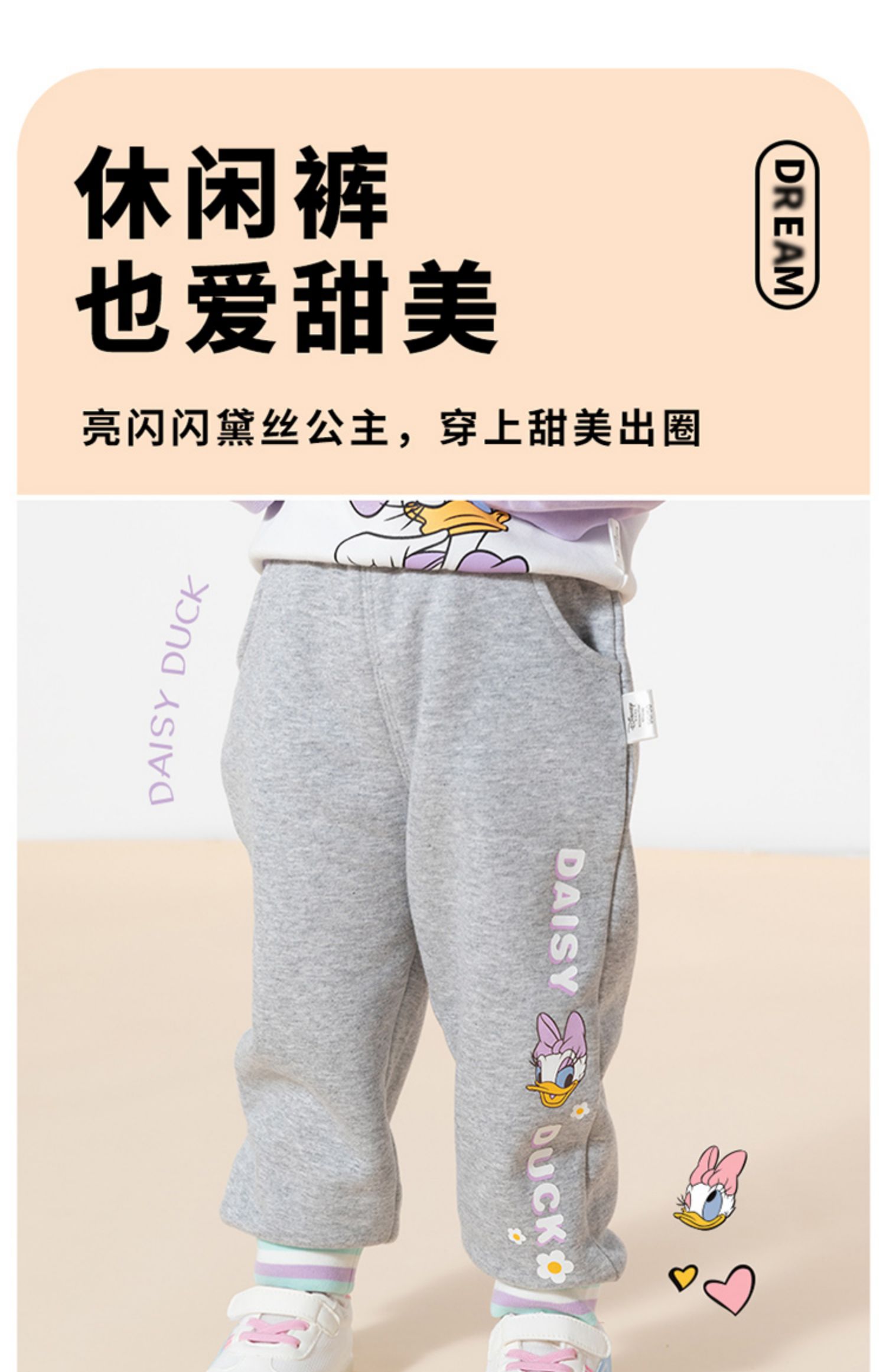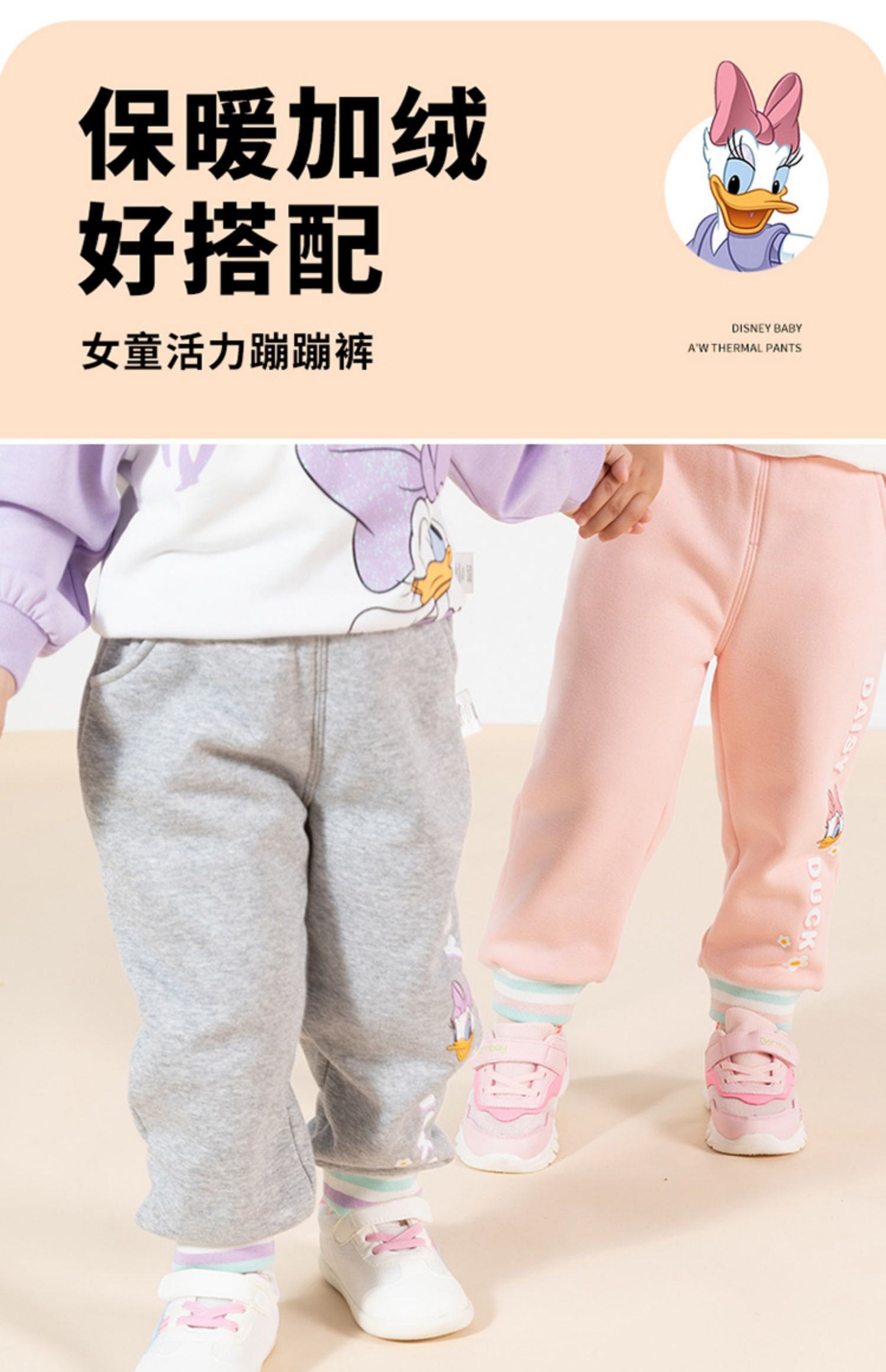 迪士尼童装女童加绒长裤秋冬新款中小童甜美黛丝宝宝保暖绒裤233K1387