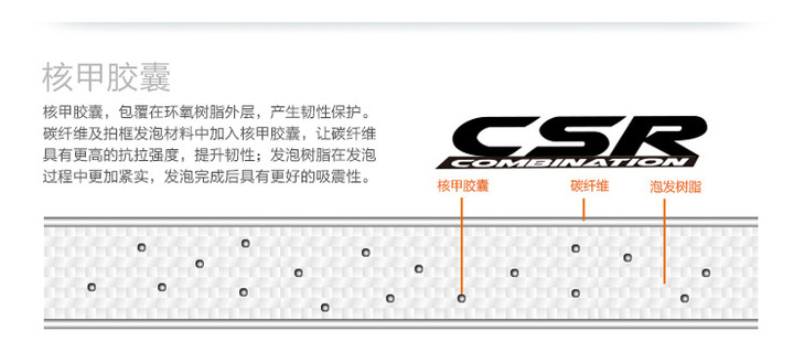 拍框材质:超高刚性碳纤维M30L+核甲胶囊(CSR)