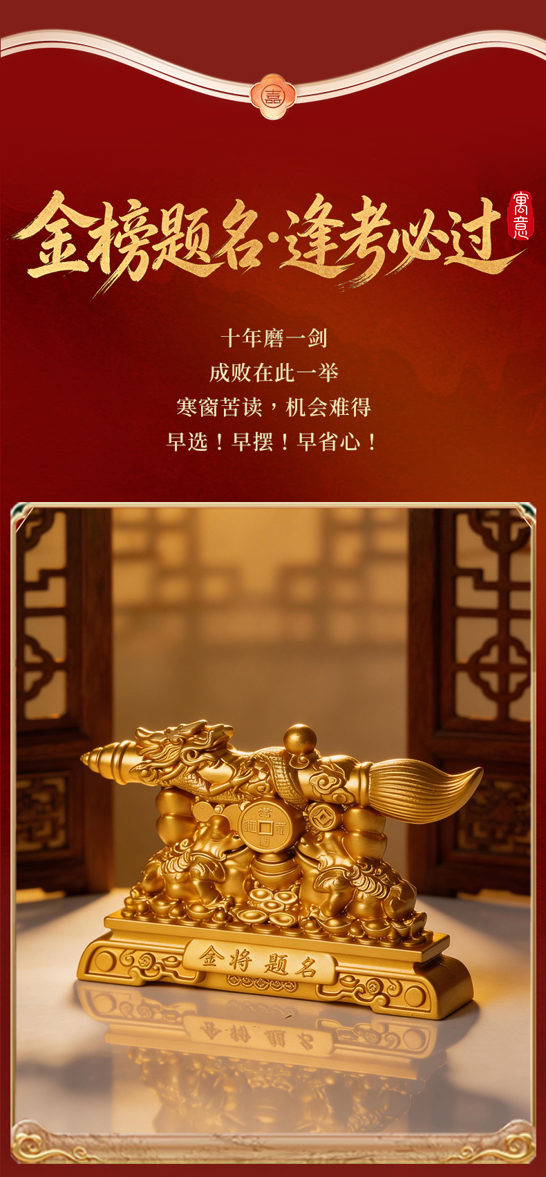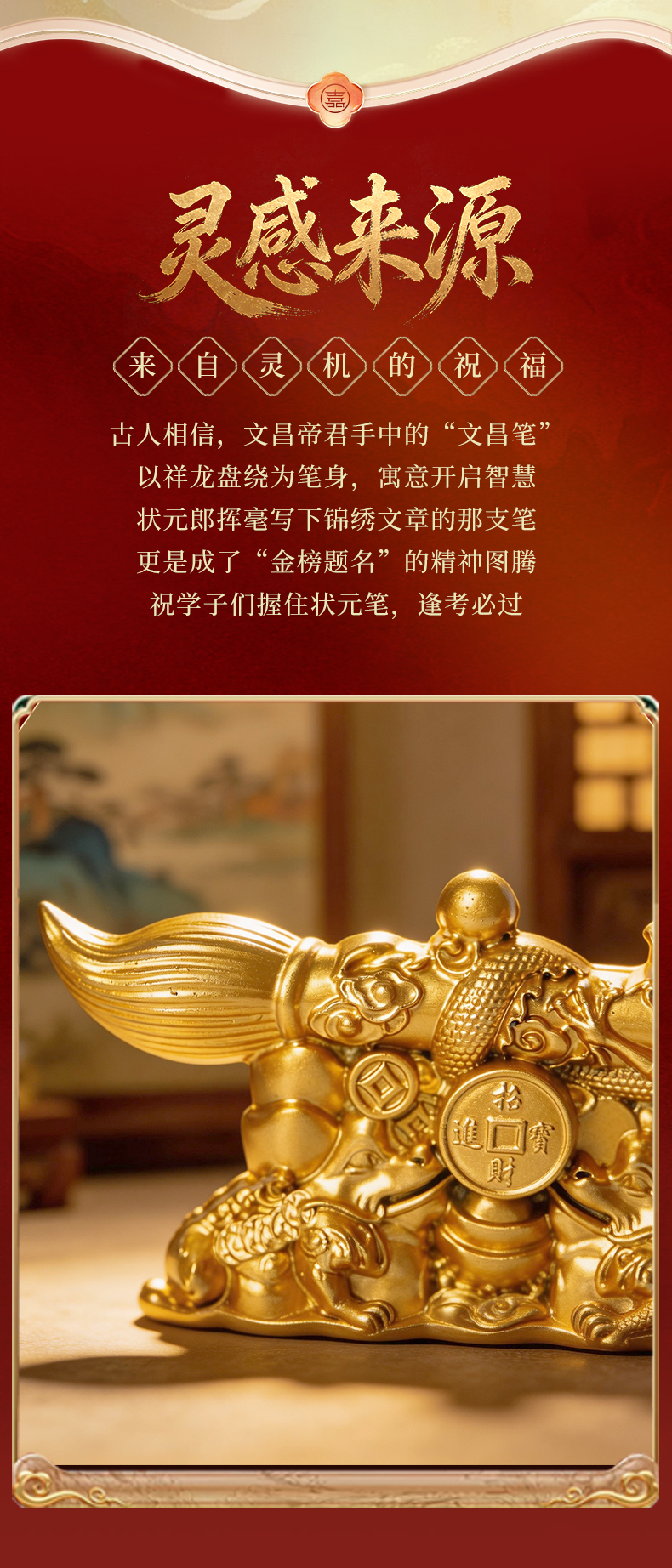 灵机麦玲玲金榜题名文昌笔金蟾学习桌摆件中高考幸运礼物一举高中