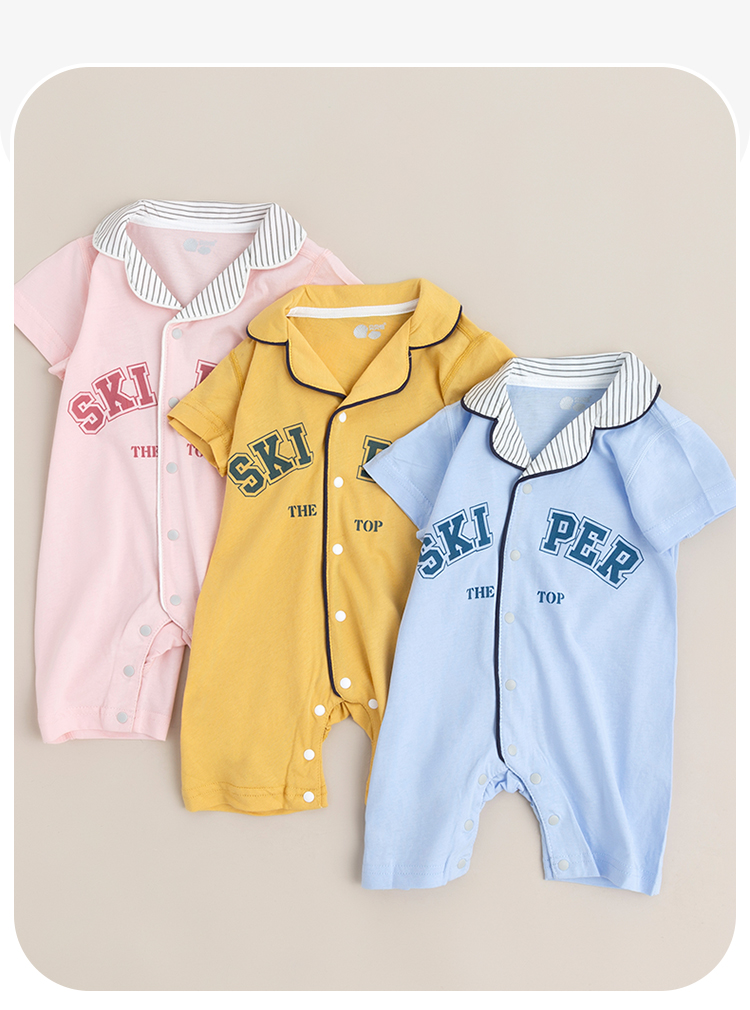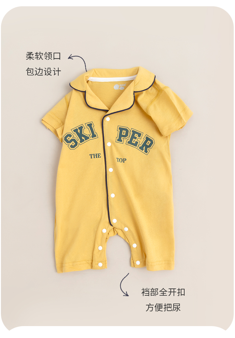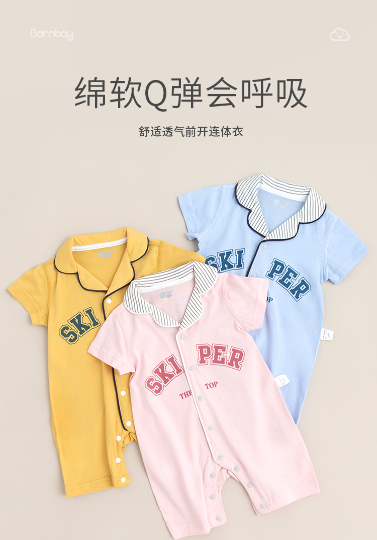 贝贝怡夏季新品男女宝短袖前开扣连体衣可爱时尚宝宝外出服222L548