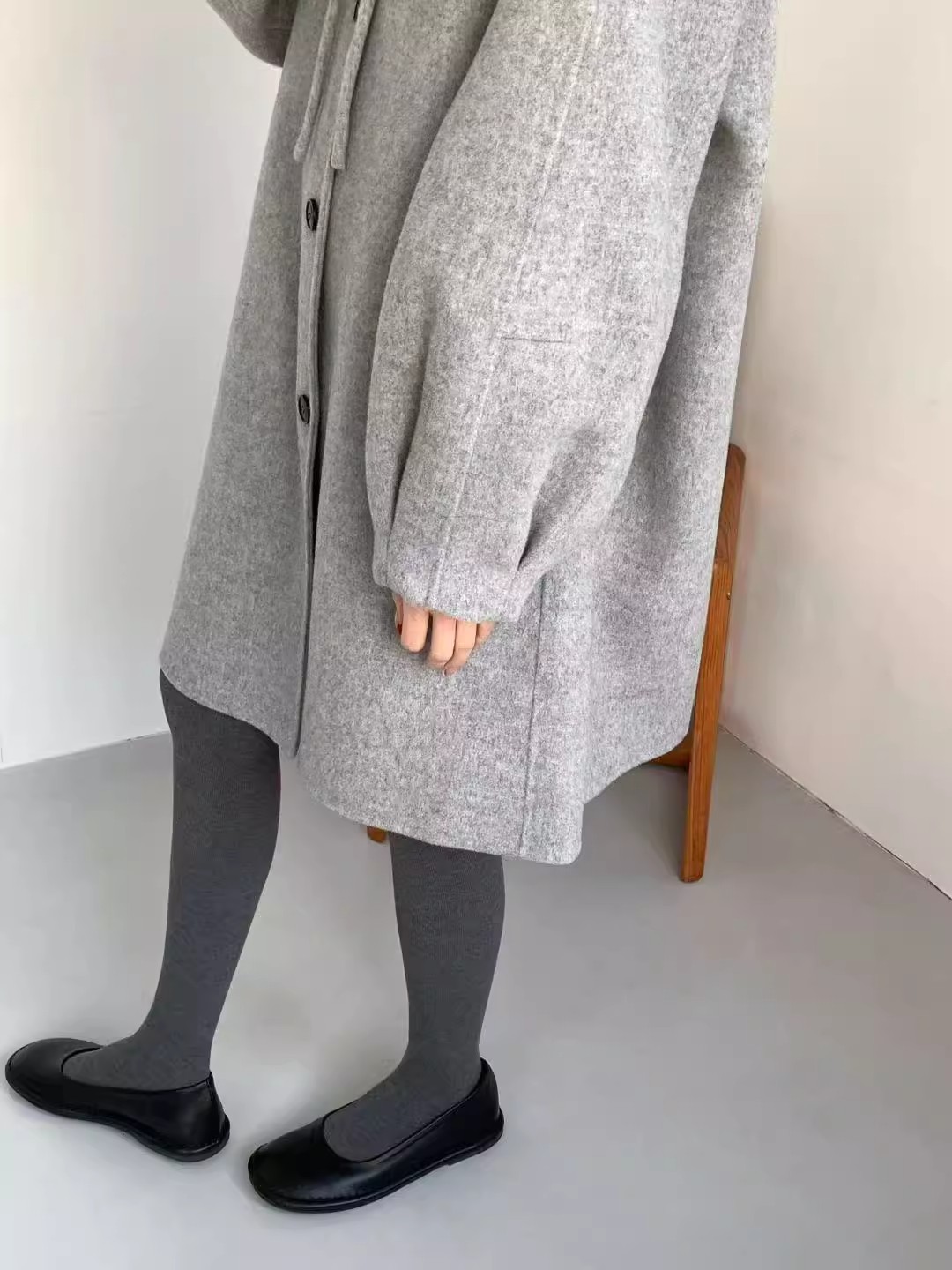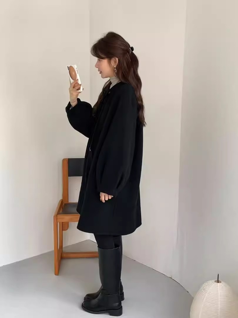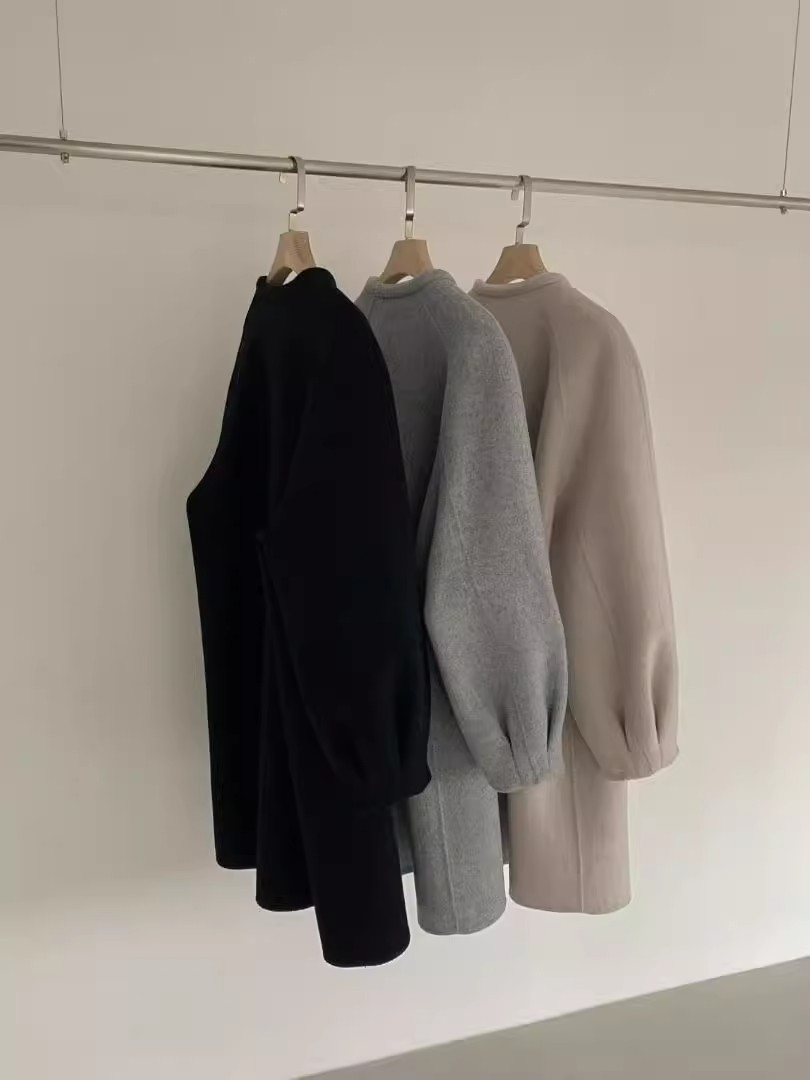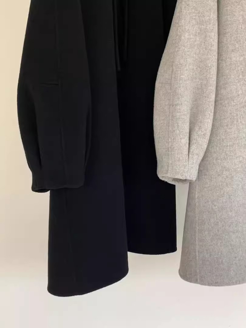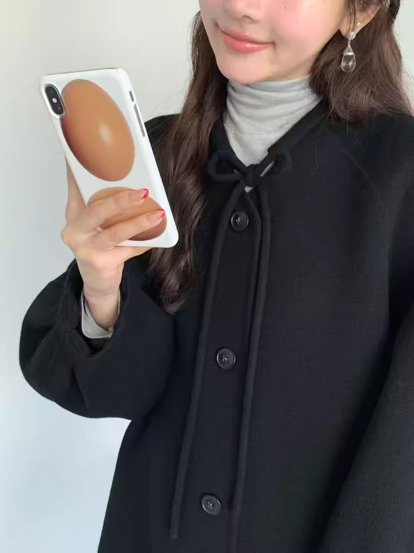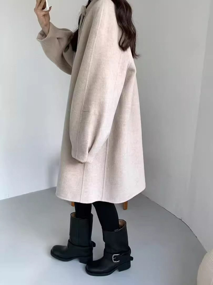 EGG韩国同款!2025冬季小香风圆领蝴蝶结毛呢大衣女双面羊绒外套!