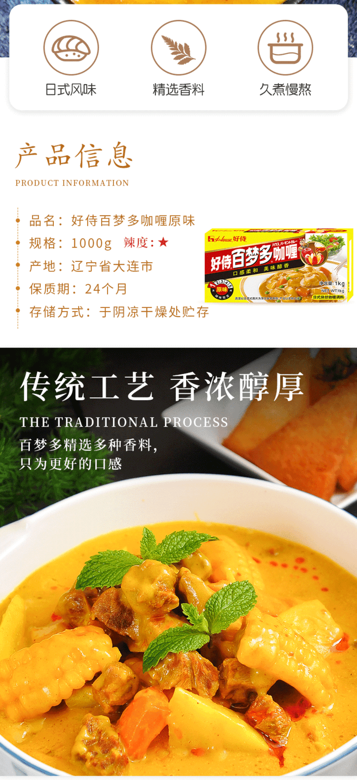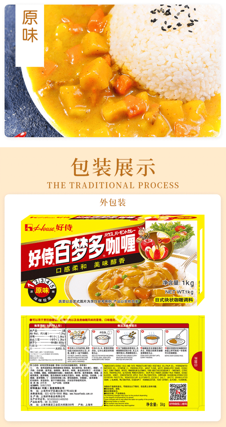 好侍百梦多原味咖喱块1kg