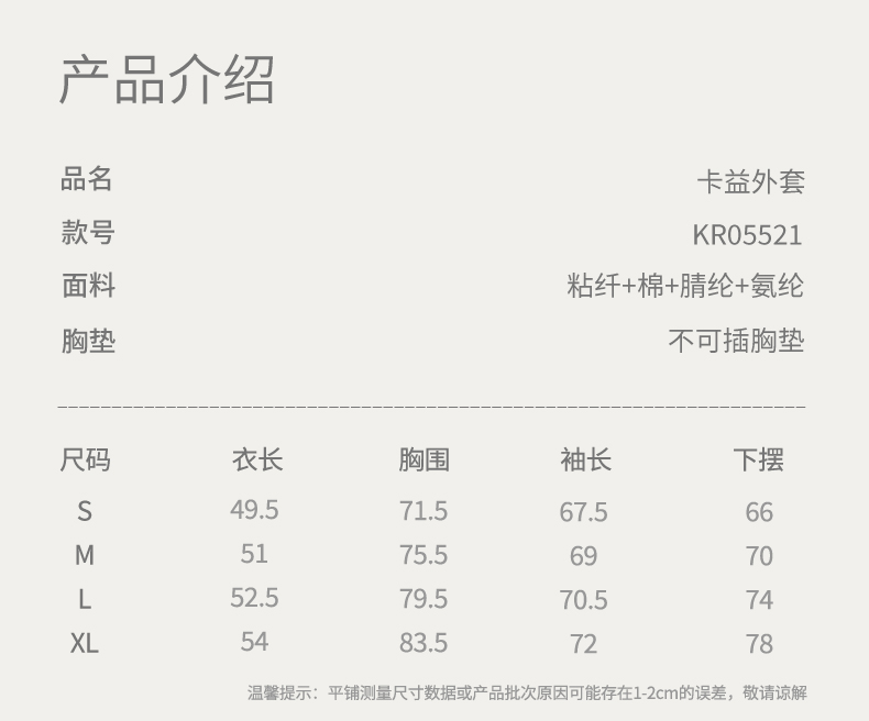 KR05521 卡益加绒长袖不可插胸垫