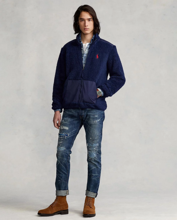 R.L 小馬球 加厚珊瑚绒 拉链毛毛外套