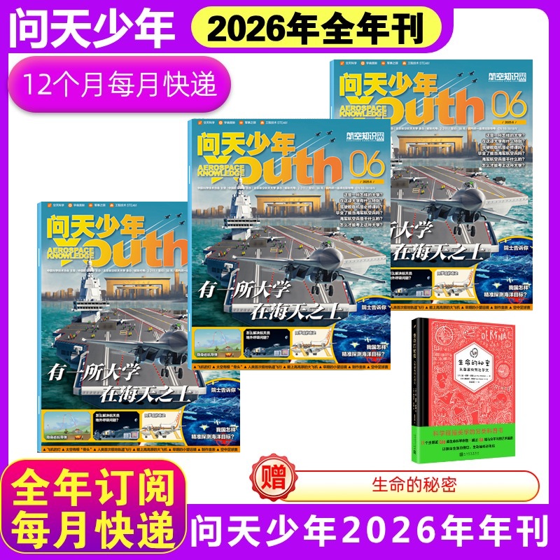 问天少年赠品机制:购买整年《问天少年》2026年 额外赠送徽章一个(在第一期包装袋内,仅此一期赠送,2月起订不送。3D拼插模型仍为每期赠品)