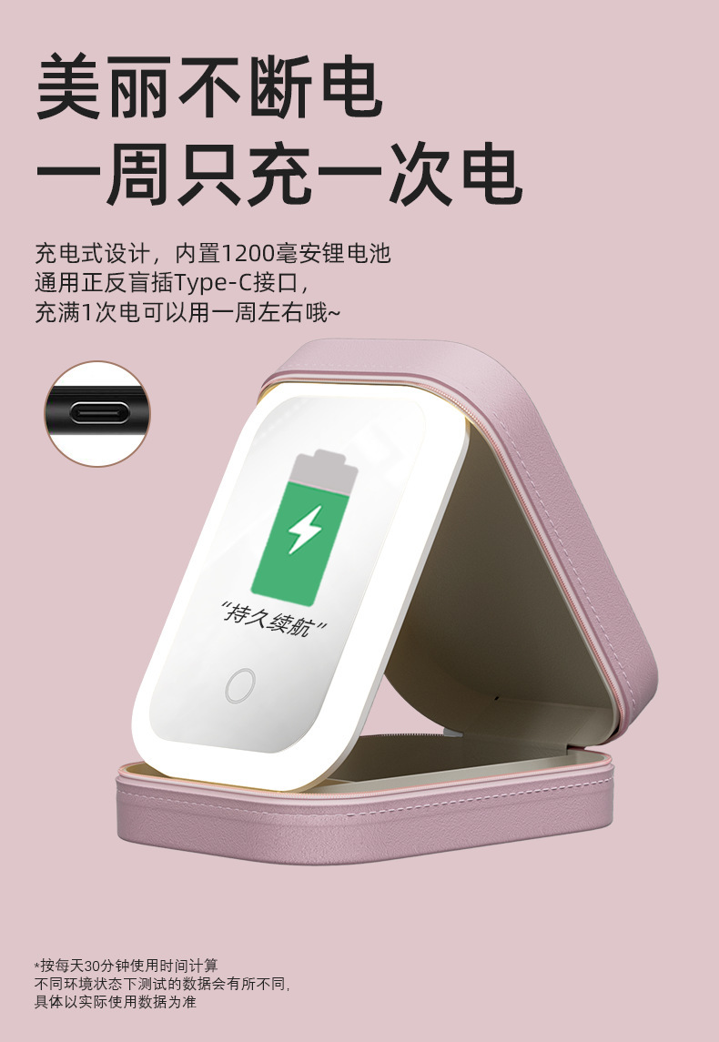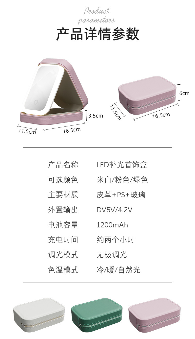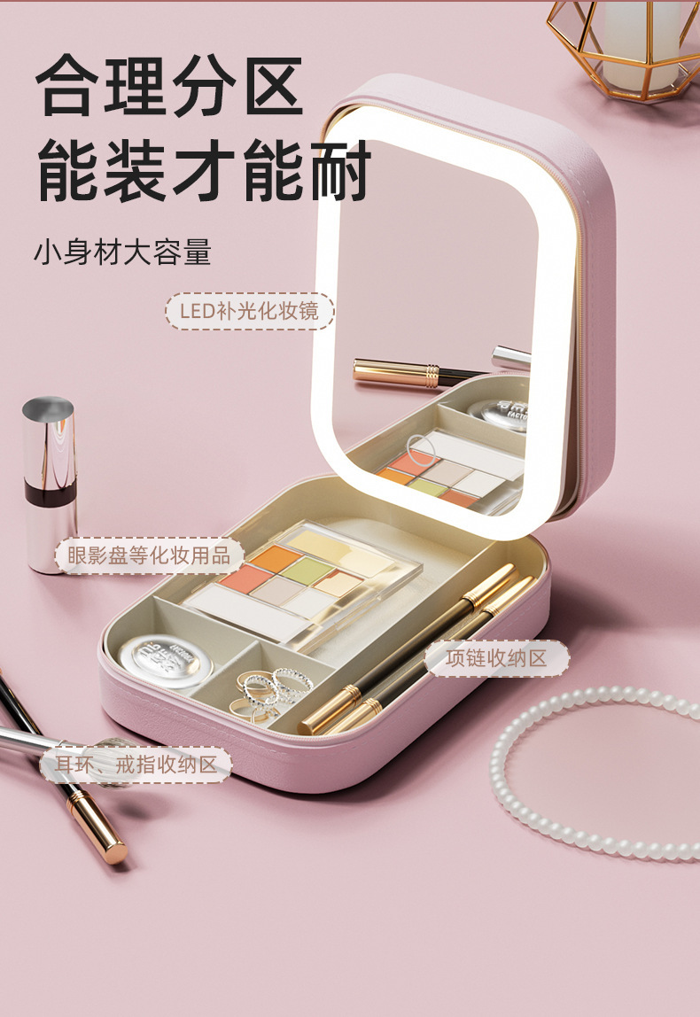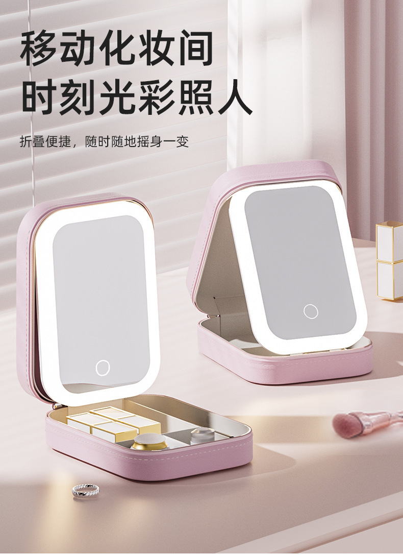【理想的移动LED化妆镜,也是首饰盒】多功能LED化妆镜,拒绝光纤不对,即是镜子也是首饰盒便携随身收纳盒QQ