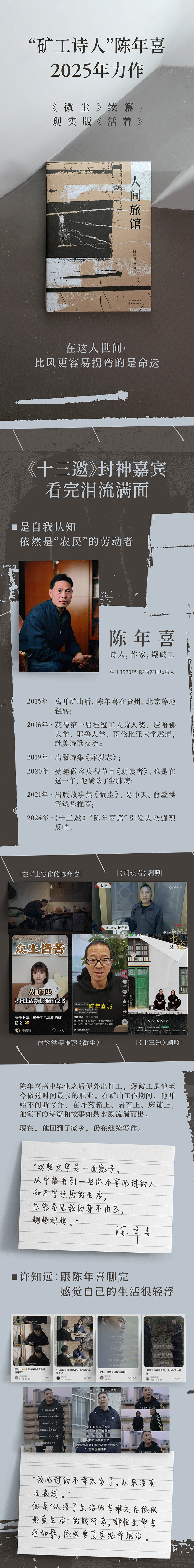 人间旅馆(《微尘》作者陈年喜2025年力作,现实版《活着》,19个奔命故事,呈现属于粗粝生活中的冲天一喊。“在现实面前,活着是首要的。”)