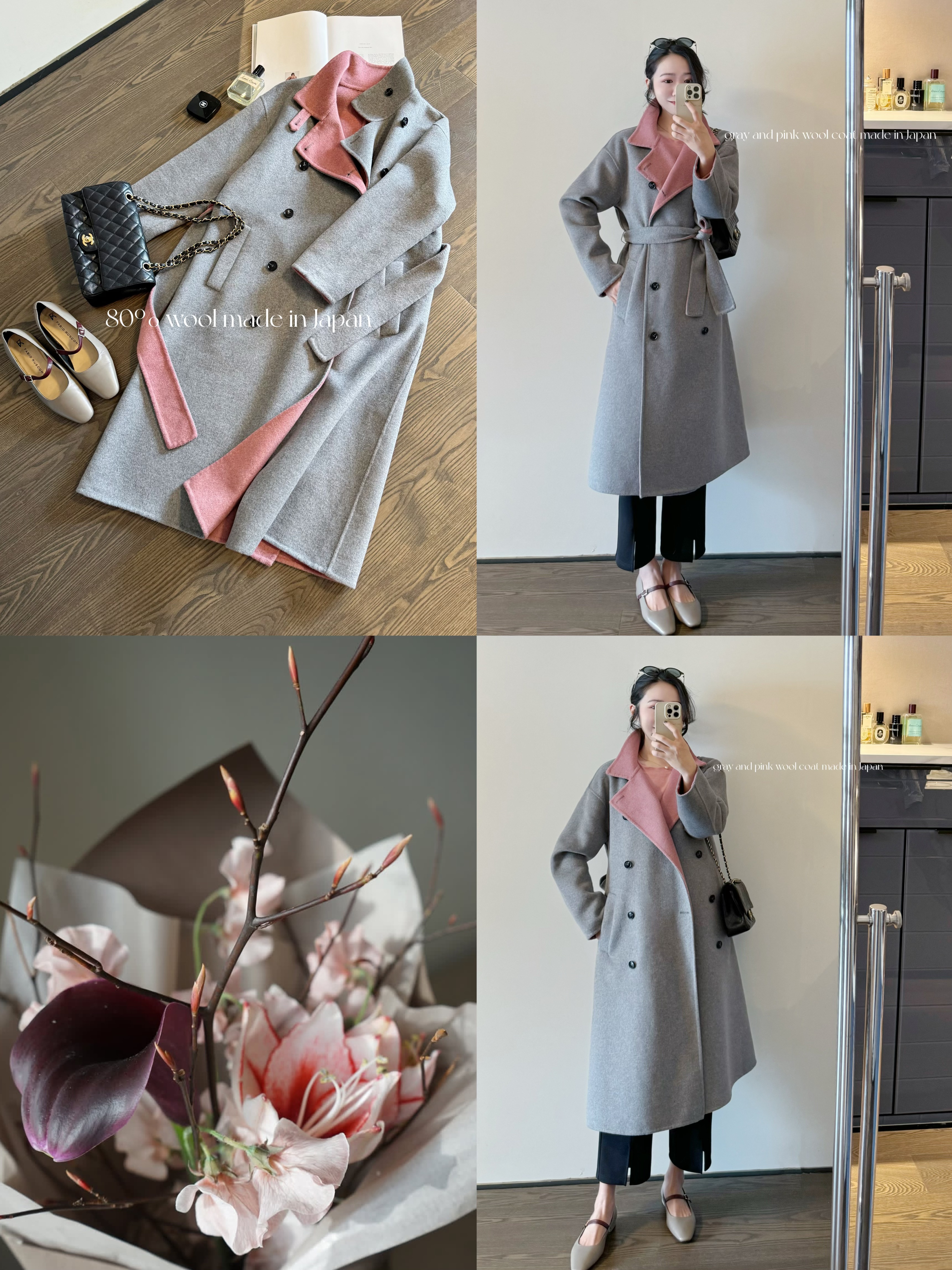 本来不做大衣了,来了一批日本进口双面呢,这个莫兰迪灰粉配色直接惊艳全场。那么,就用来做冬款的收官诚意之作吧。80%羊毛含量,是那种高级感满溢的顺毛质感。