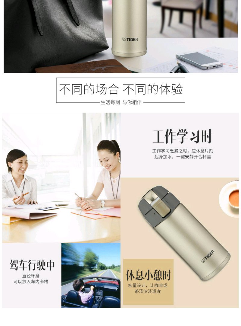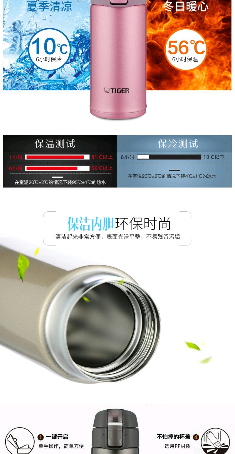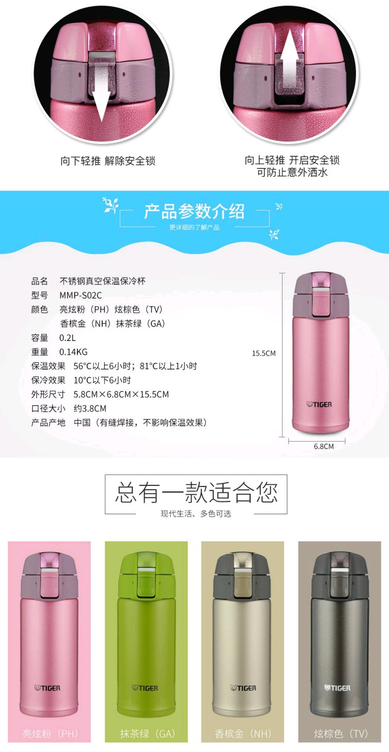【6F】虎牌保温杯 水杯杯子男女单手易开型不锈钢真空直饮杯 MMP-S02C 200ml 炫棕色