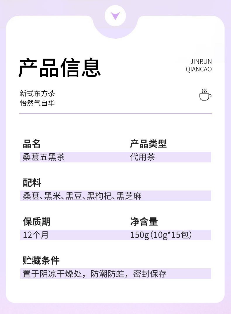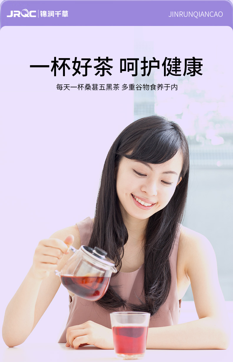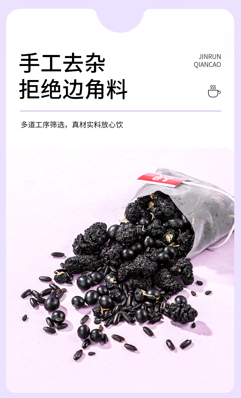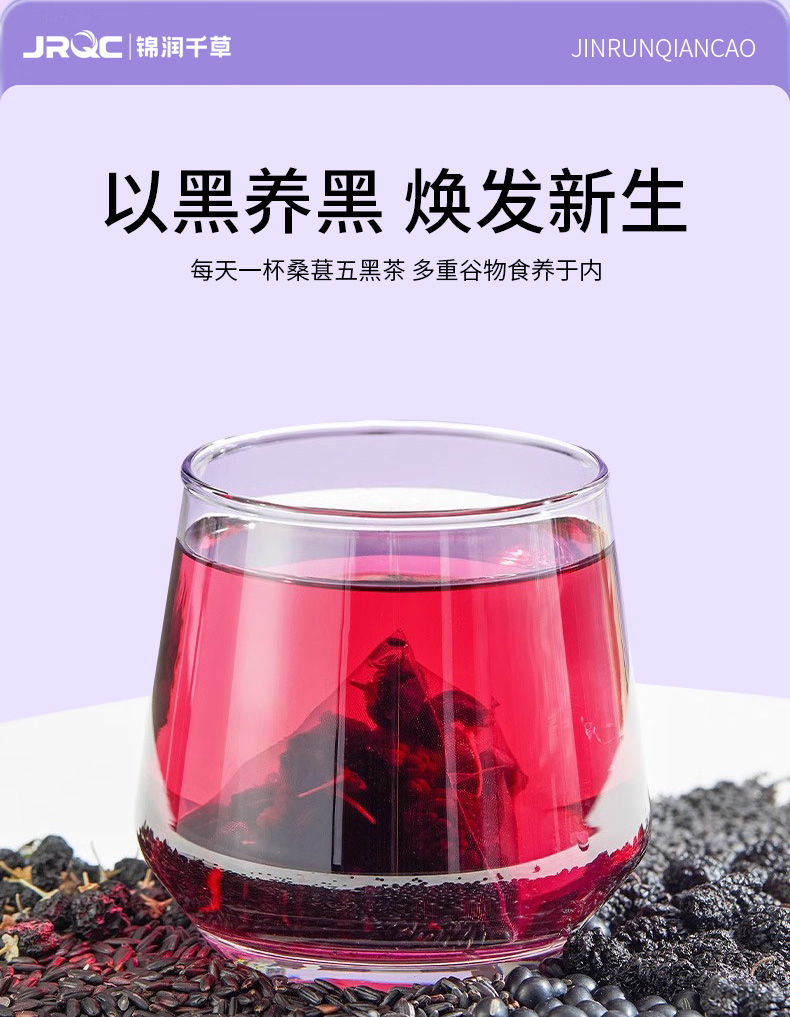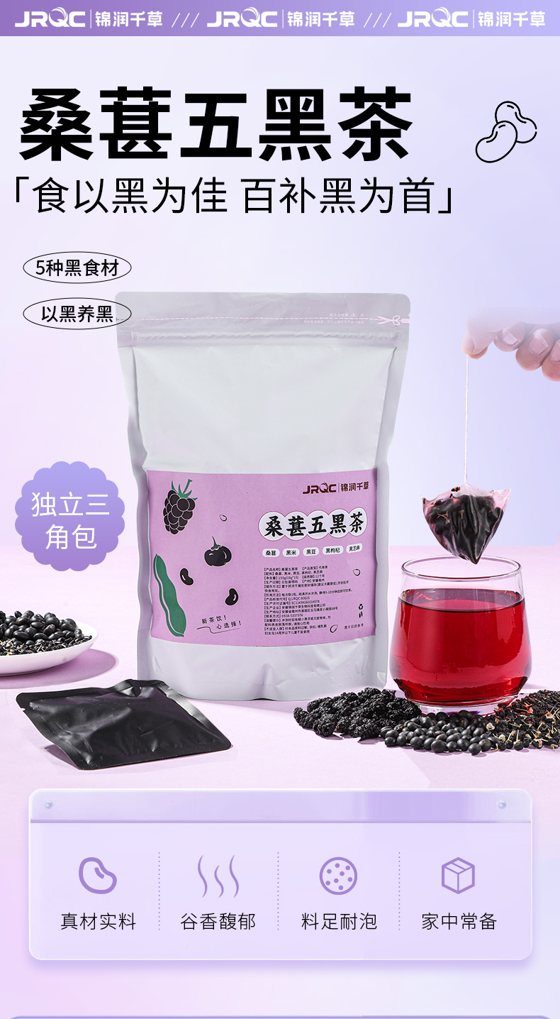 锦润千草五黑茶黑枸杞黑豆黑米黑芝麻桑葚五黑茶养生三角茶包 10g*15小包/袋