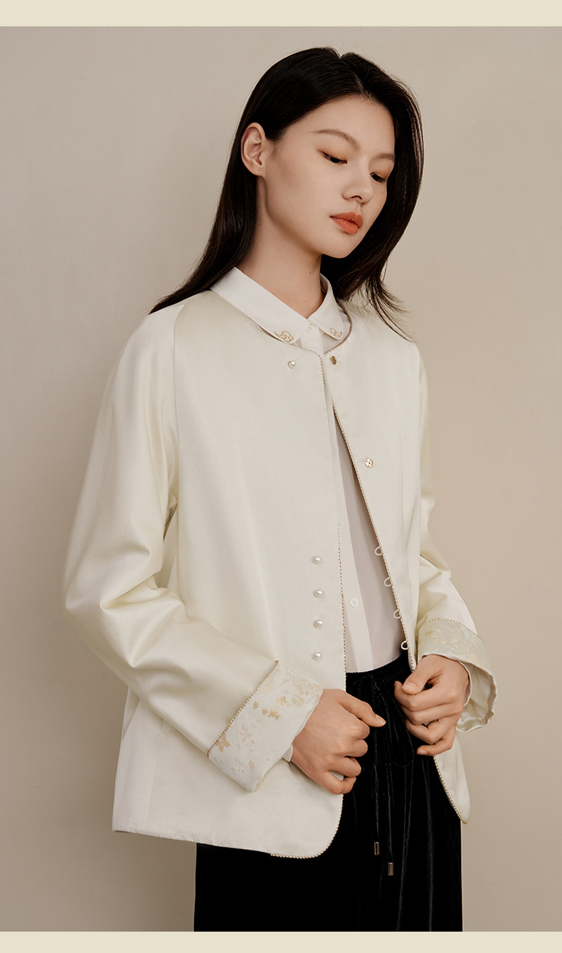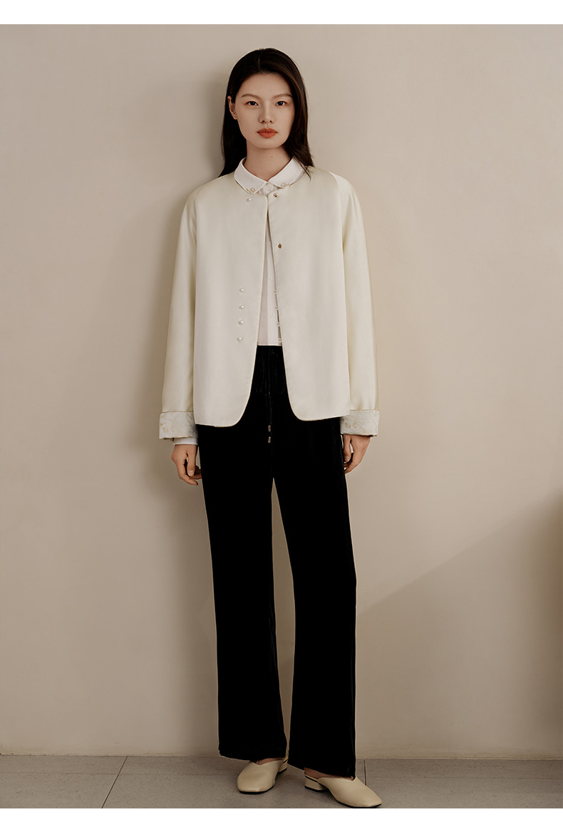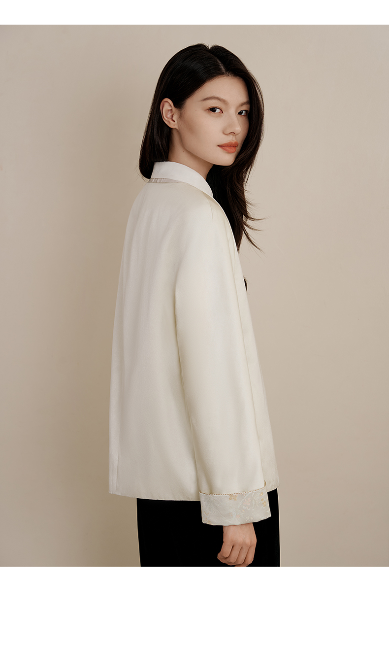 金三塔丝绵棉袄女100%桑蚕丝填充新中式蝴蝶提花丝绵上衣外套秋冬 YSFFD704