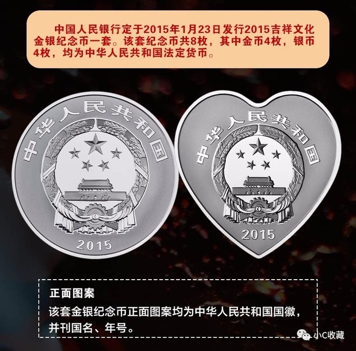 在中国纪念币的发展史上,2015年是个非常重要的年份:因为央行在这一年,发行了几套有代表性的龙头币。尤其是吉祥文化的开山之祖──2015年吉祥文化纪念币。